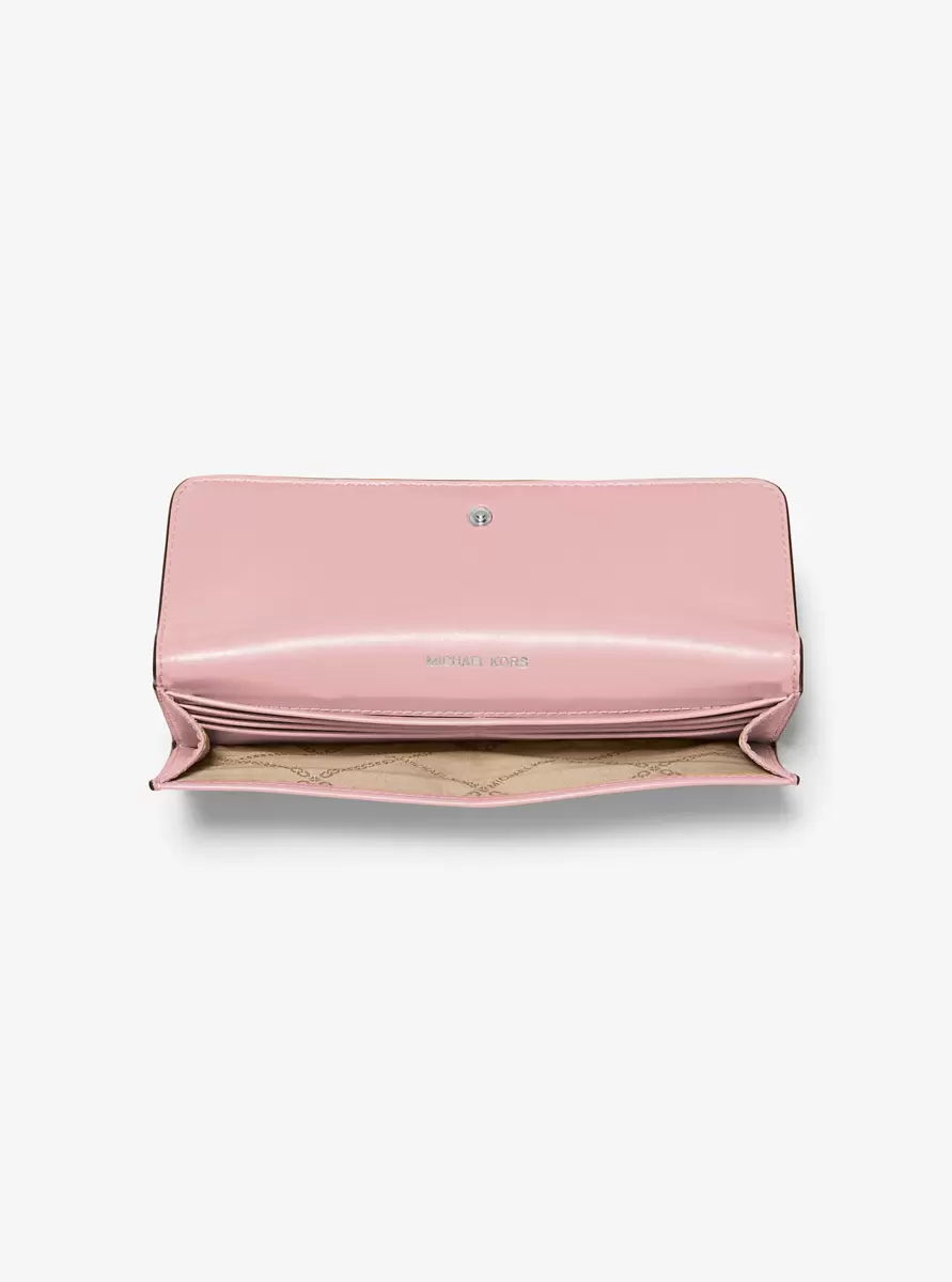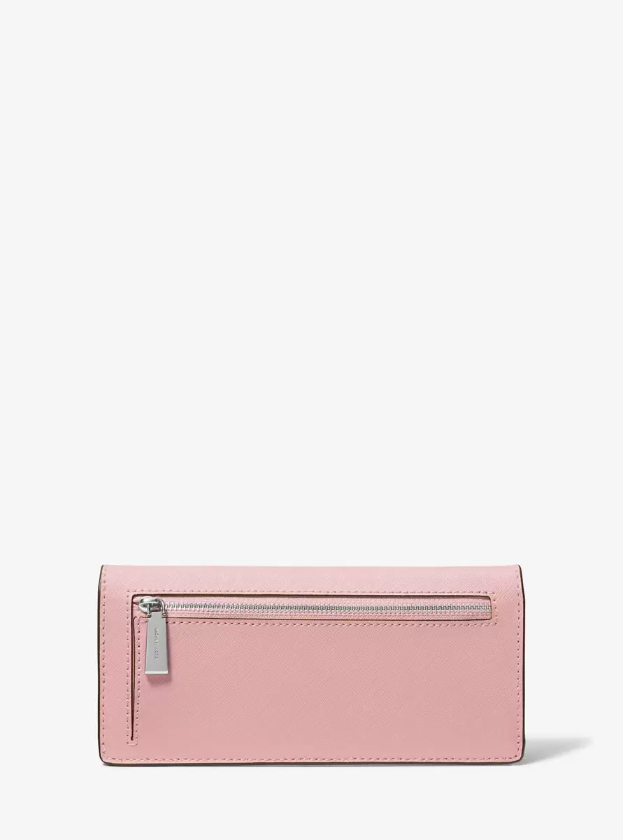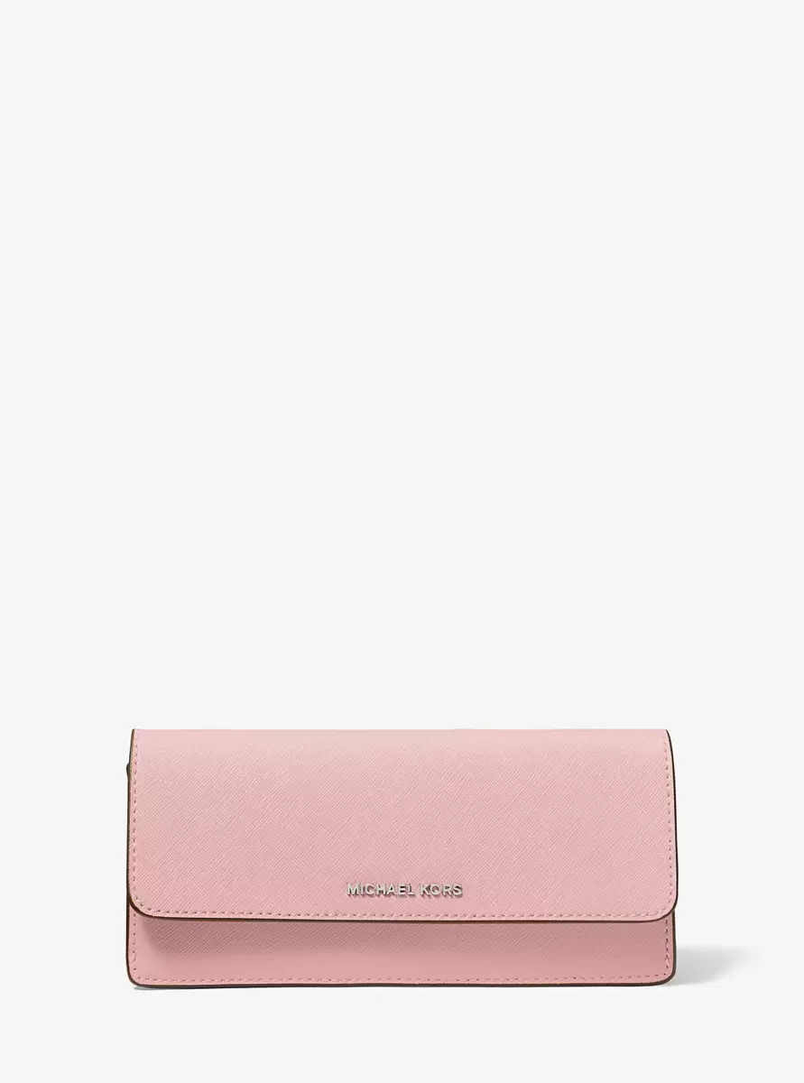 Ein zeitloses Accessoire, Tag für Tag, Jahr für Jahr. Gefertigt aus edlem Saffiano-Leder, bietet unsere Jet Set Geldbörse mit Druckknopfverschluss Platz für all Ihre wichtigen Dinge. Sie verfügt über mehrere Kartenfächer innen und ein Reißverschlussfach auf der Rückseite. Verstauen Sie sie in Ihrer Lieblingstasche oder tragen Sie sie solo als Clutch.