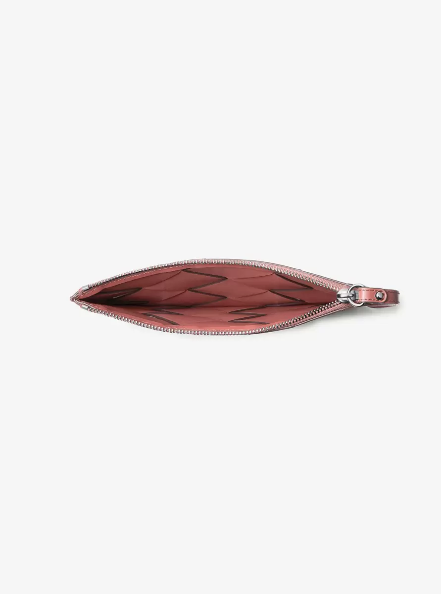 Diese aus gewebtem Leder gefertigte Handgelenktasche bietet ausreichend Platz für die wichtigsten Dinge und passt dennoch problemlos in Ihre Alltagstasche. Dank ihres eleganten Designs lässt sie sich sowohl schick als auch leger kombinieren. Ein Innenfach bietet Platz für Ihr Smartphone. Schnappen Sie sie sich und nehmen Sie sie mit zum nächsten Kaffee oder zum Treffen mit Freunden im Freien.