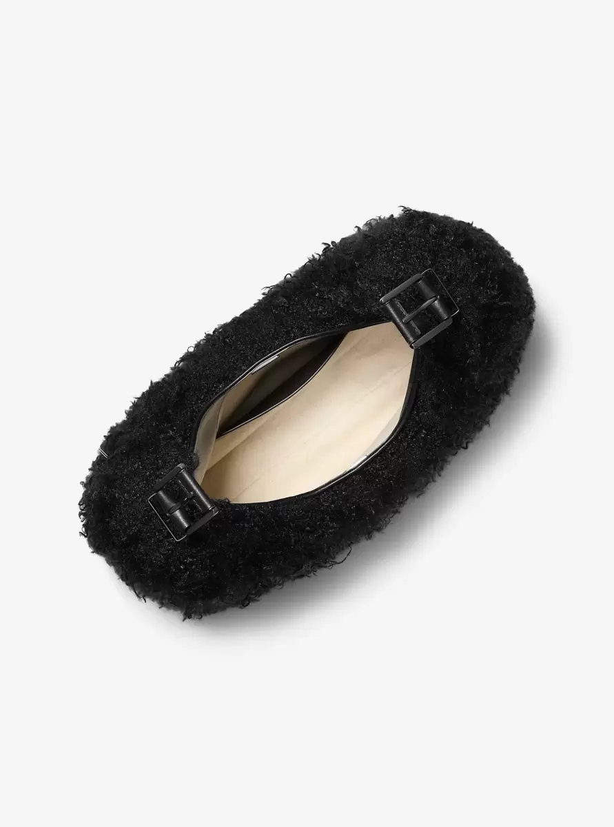 Die Nolita Hobo-Tasche wirkt lässig und gleichzeitig raffiniert dank des weichen Kunstfells und der strukturierten Kanten, die ihre Form definieren. Sie verfügt über einen verstellbaren Schulterriemen aus Leder mit polierten Schnallen und ein großes, offenes Innenfach für alles, was Sie brauchen.