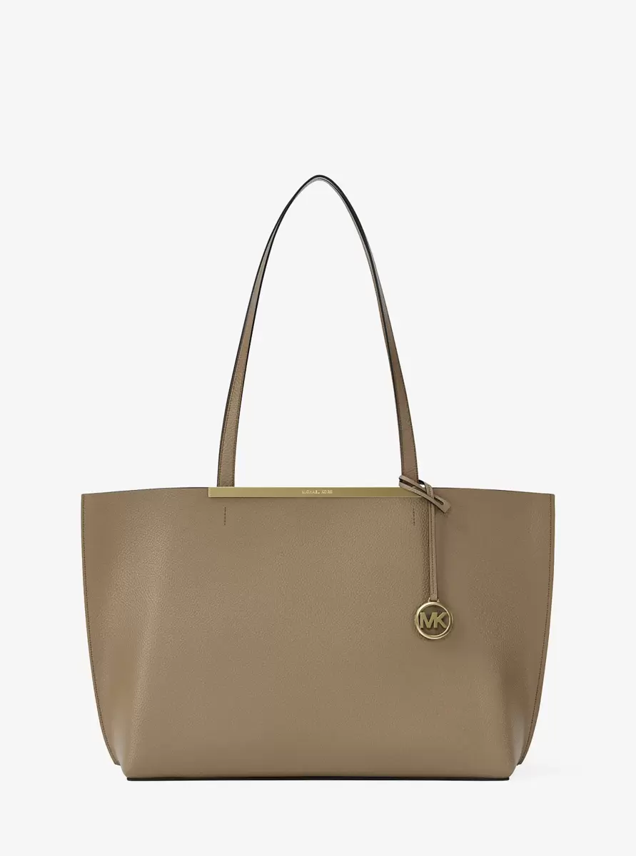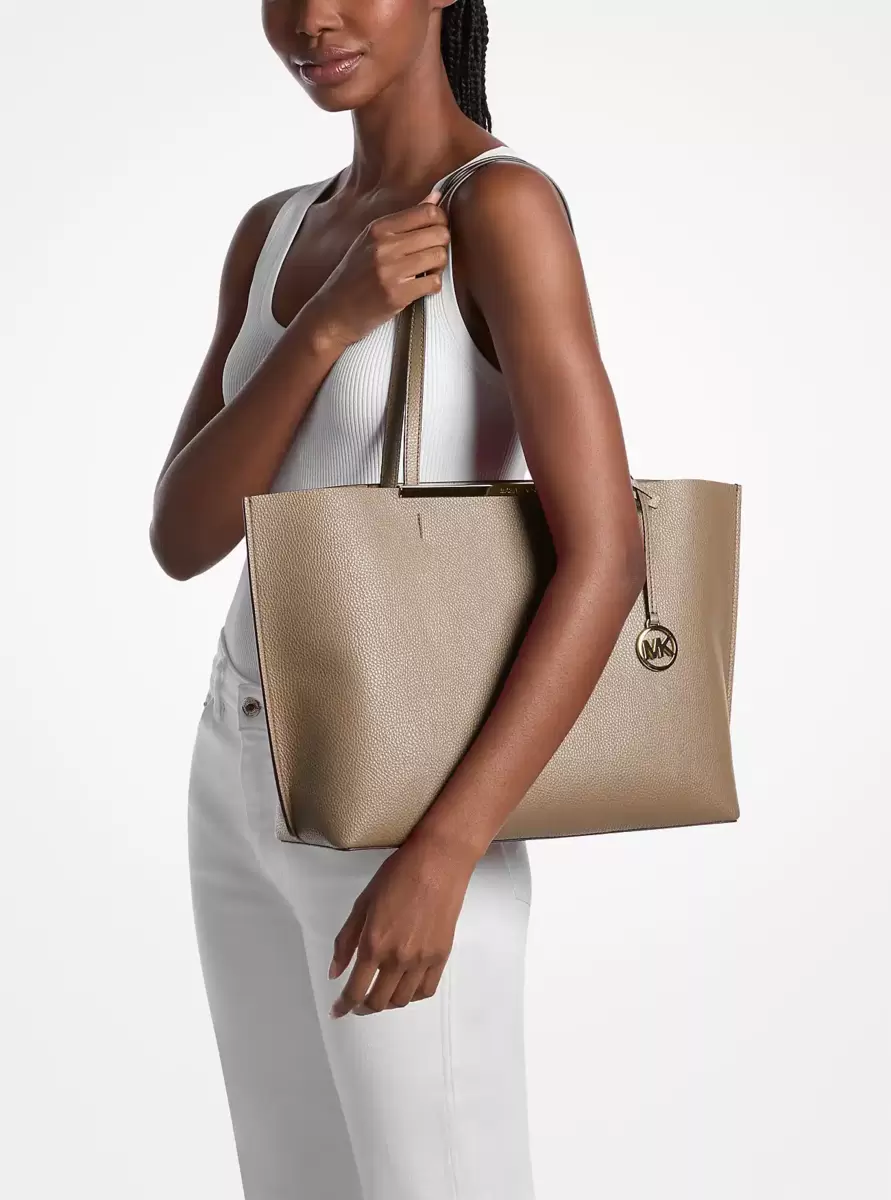 Hier ist die schicke Alltagstasche Evelyn, in der Sie Tablet, Smartphone und mehr verstauen können. Sie ist robust verarbeitet, bietet ein geräumiges Hauptfach mit einem Innenfach und ist mit einem Logo-Anhänger und Metallbeschlägen am Verschluss versehen.