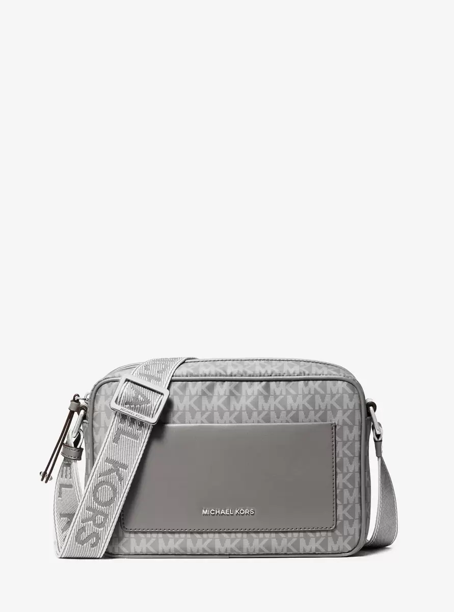 Diese Jet Set Crossbody-Tasche verkörpert sportliche Eleganz mit ihrem Logoprint, dem gewebten Riemen und den glatten Akzenten. Diese elegante Tasche im Stil von Vintage-Kamerataschen bietet praktische Innen- und Außentaschen für unterwegs.