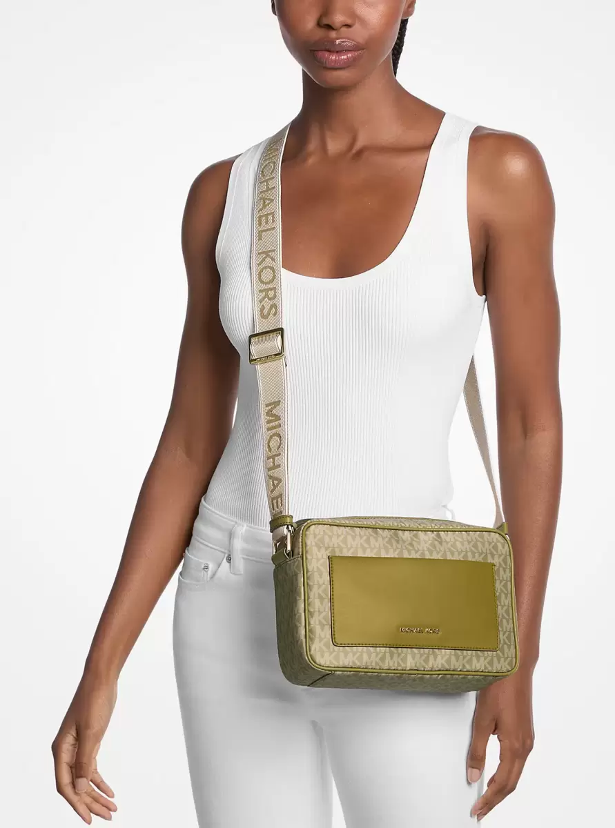 Unsere Jet Set Umhängetasche wird bewusst aus recyceltem Polyester gefertigt und besticht durch unseren charakteristischen Logoprint und goldfarbene Beschläge – für nachhaltigen Stil. Dieses geräumige Modell bietet ein großzügiges Hauptfach mit Reißverschluss, ein praktisches Einsteckfach vorne und einen verstellbaren Schultergurt für bequemes Tragen. Entworfen für die umweltbewusste Fashionista, die weder bei Stil noch bei Funktionalität Kompromisse eingehen möchte.