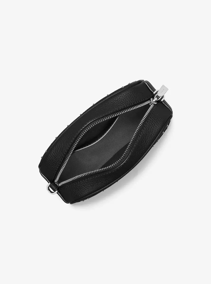 Werten Sie Ihre Alltagsbegleiter mit unserer Jet Set Kamera-Umhängetasche auf. Gefertigt aus genarbtem Leder mit Nieten für einen robusten und luxuriösen Look, bietet dieses kompakte Modell dank abnehmbarem Schulterriemen und geschwungener Form, die sich angenehm an den Körper schmiegt, mühelosen Tragekomfort. Mit ihrer genarbten Textur und den silberfarbenen Beschlägen ist sie das perfekte Accessoire, das sowohl lässige Tages- als auch Abendoutfits perfekt ergänzt.