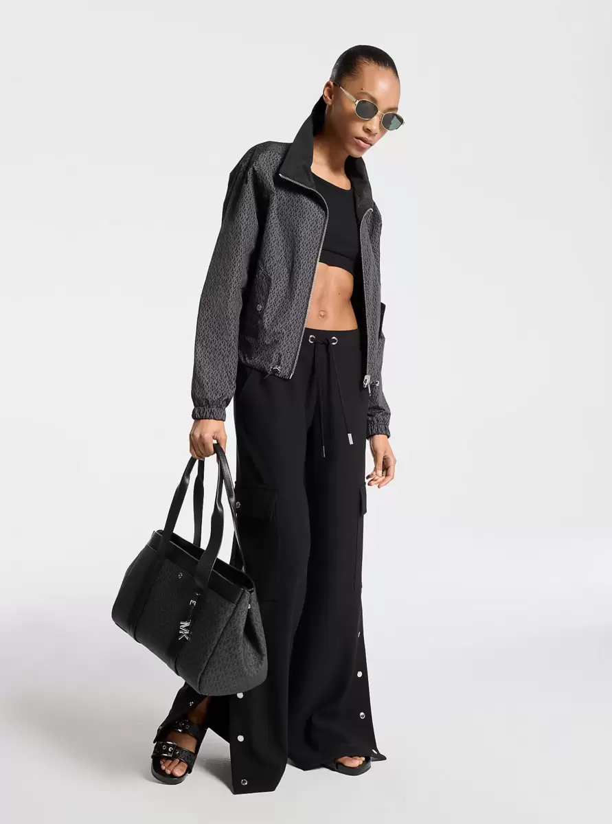 Diese Hose vereint Funktionalität und Eleganz. Das Modell aus Stretch-Crêpe besticht durch übergroße Cargotaschen, einen Kordelzug im Bund und Druckknöpfe am Bein – eine moderne Interpretation der klassischen Schlaghose. Kombinieren Sie sie lässig mit einem Basic-Top oder elegant mit einer taillierten Weste für einen stylischen Auftritt in der Stadt.