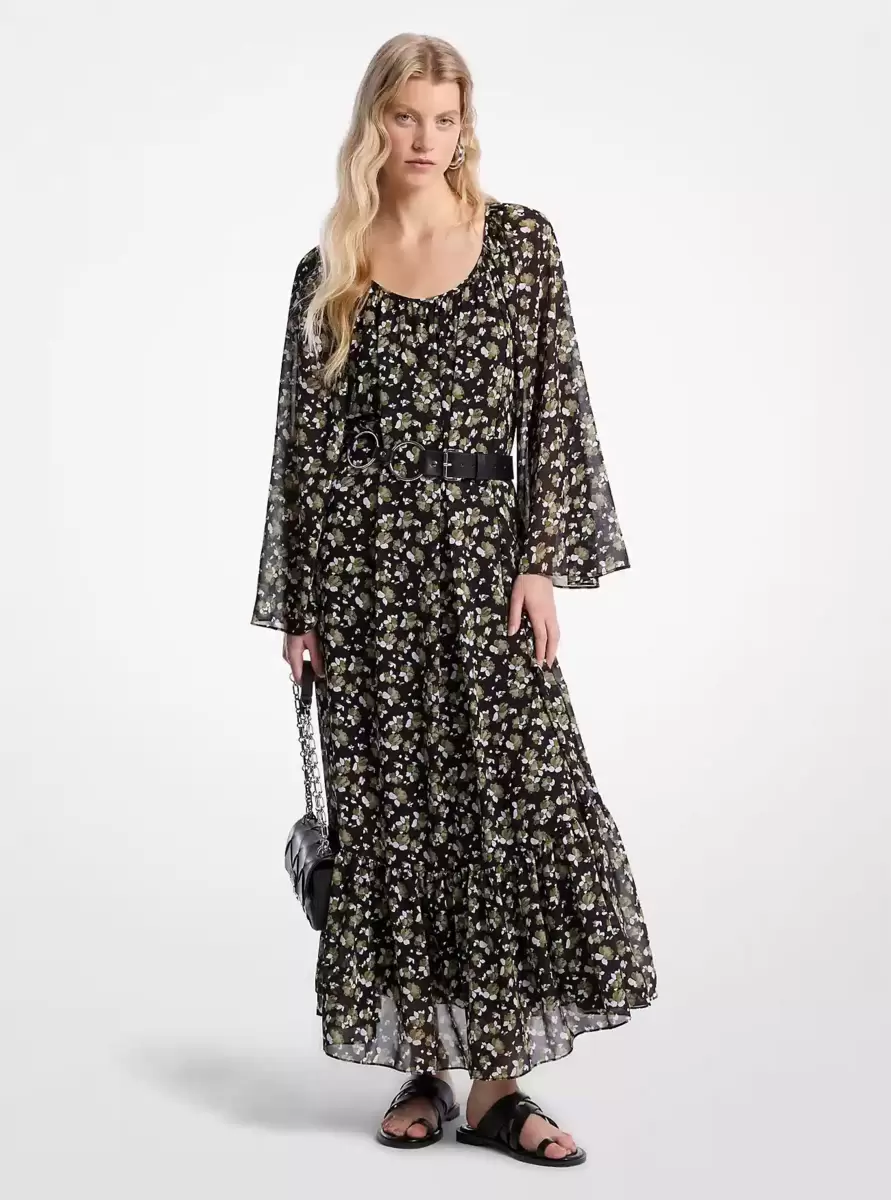 Dieses Kleid mit seinem vielseitigen Blumenmuster ist ein perfektes Basic für jede Jahreszeit. Die luftige, Boho-inspirierte Silhouette aus leichtem Georgette sorgt für einen romantischen Look. Kombinieren Sie es mit einem breiten Gürtel und Sandalen für den perfekten Auftritt.