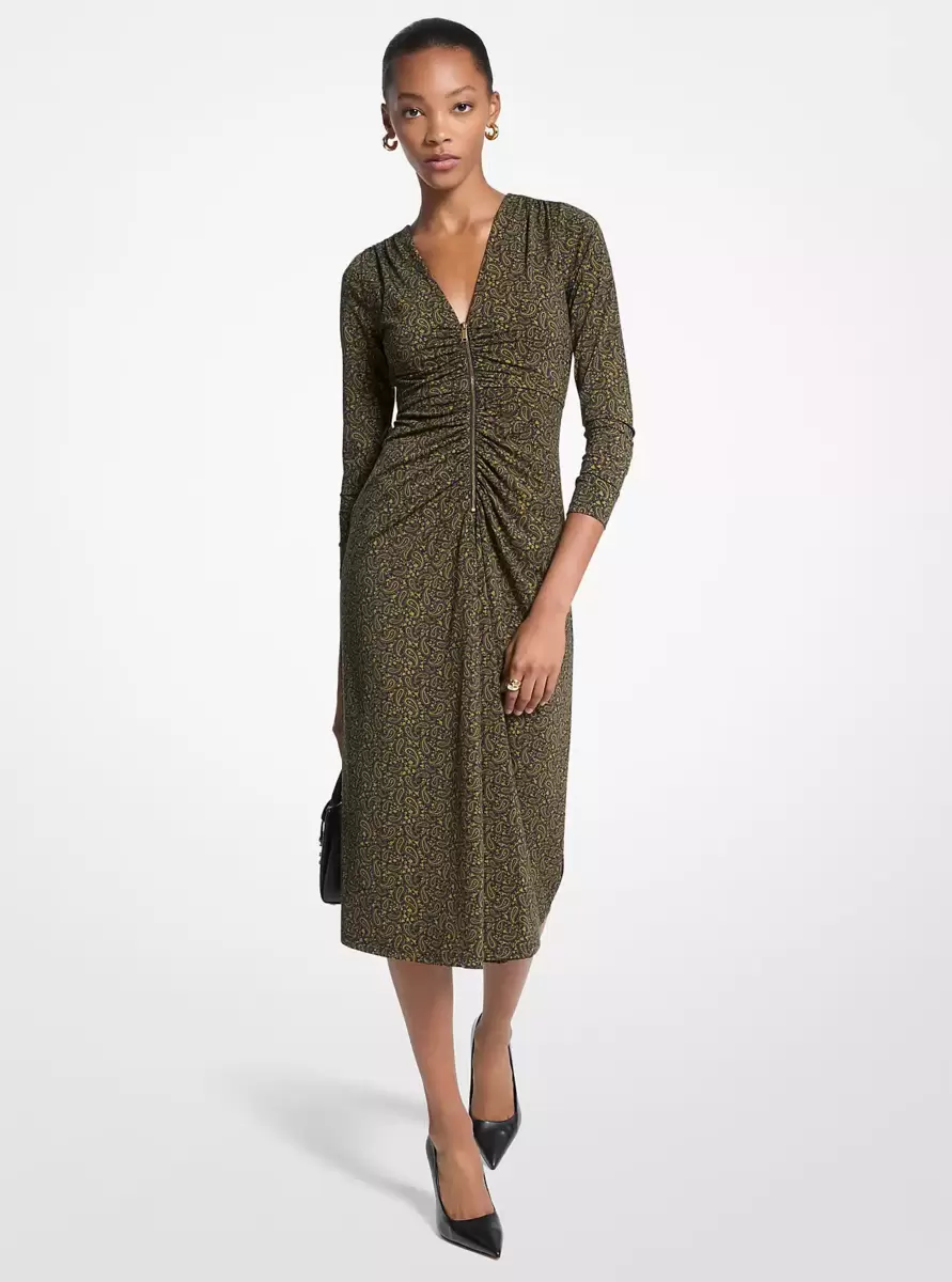 Midikleid aus dehnbarem, mattem Jersey mit Paisley-Print