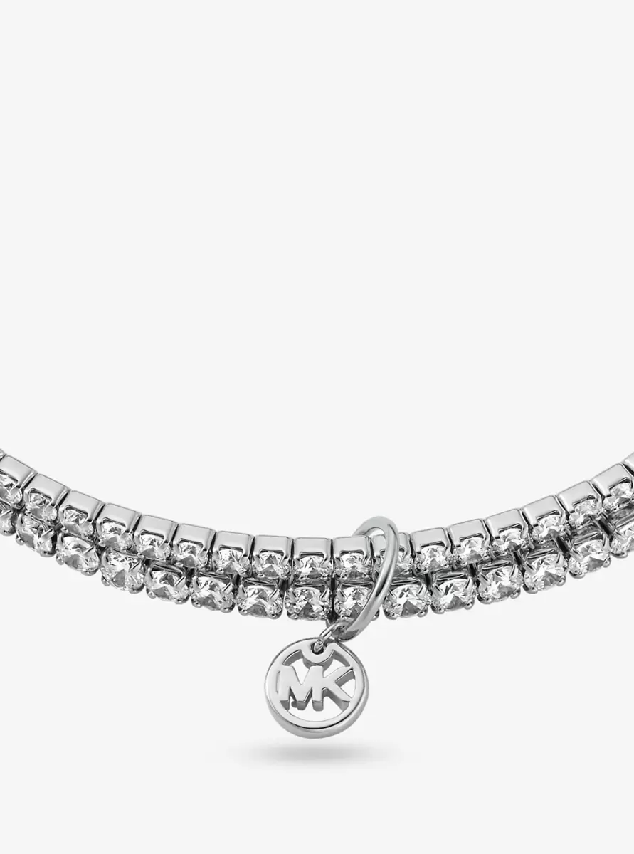 Zeitlos und doch modern: Dieses Tennisarmband aus 14-karätig vergoldetem Messing ist mit zwei Strängen besetzt, die mit funkelnden Zirkonia verziert sind. Dank des elastischen Designs lässt es sich mühelos an- und ablegen. Tragen Sie es lässig über dem Ärmel Ihres Lieblingshemdes.