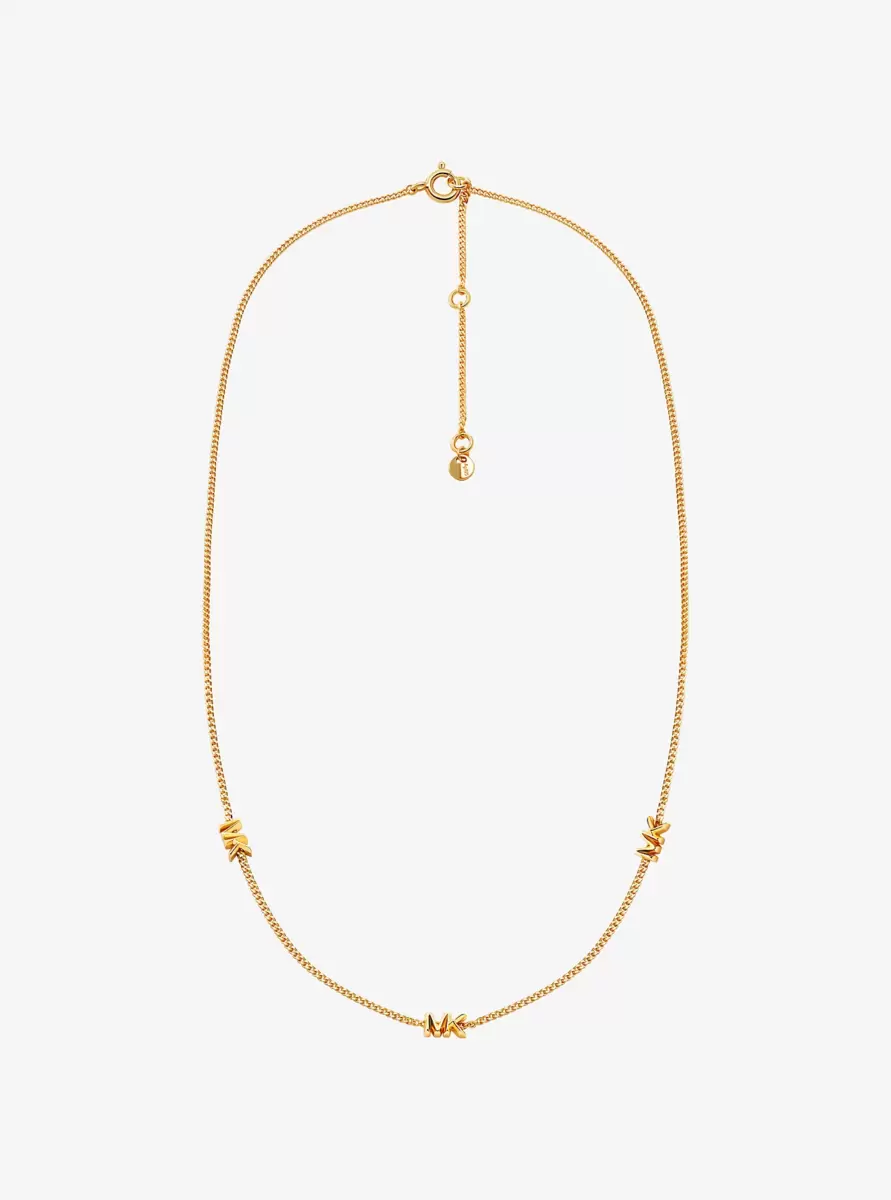 Diese zarte Halskette aus edelmetallplattiertem Sterlingsilber besticht durch drei Mini-Logo-Anhänger an einer 38 cm langen Kette, die sich perfekt zum Kombinieren eignet. Tragen Sie sie einzeln oder im Set mit den passenden Schmuckstücken.