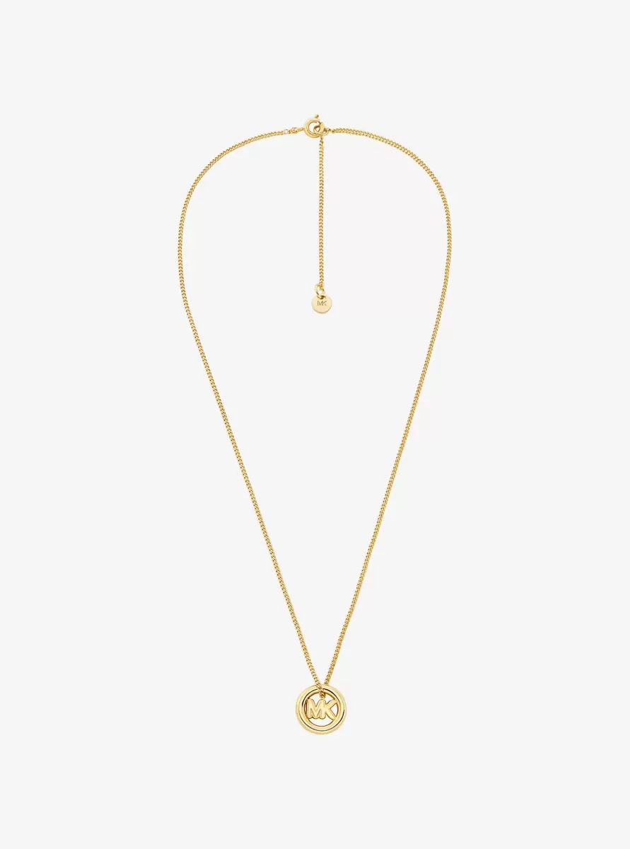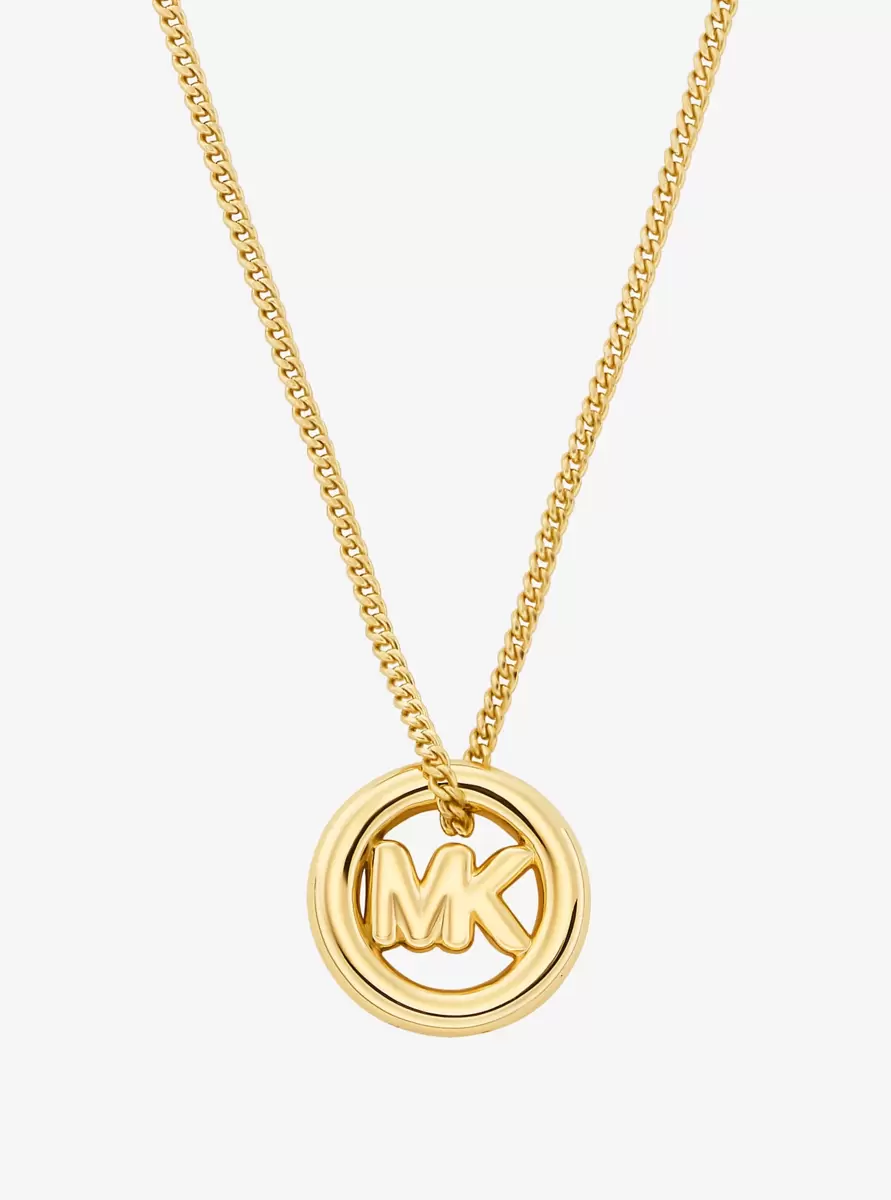 Dieser Anhänger aus Messing ist mit unserem neuen MK Pop Charm verziert. Er eignet sich ideal als Geschenk und hängt an einer zarten Kette, die mit einem Verlängerungsstück verlängert werden kann, sodass Sie ihn mit anderen Schmuckstücken kombinieren können.