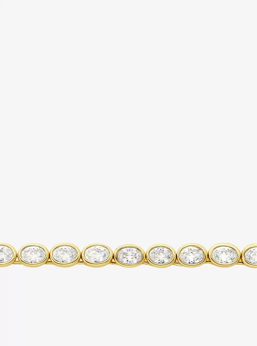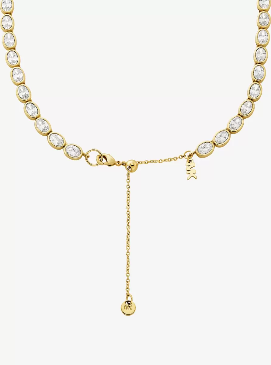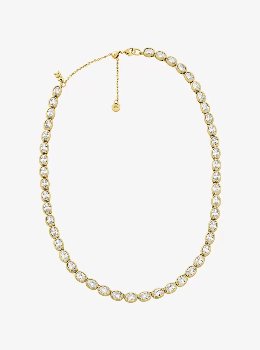 Diese atemberaubende Tennis-Halskette besticht durch eine ganze Reihe funkelnder Steine, die in 14-karätig vergoldetem Messing gefasst sind und so für zusätzlichen Glanz sorgen. Tragen Sie sie solo oder kombinieren Sie sie mit dem passenden Armband für einen echten Hingucker.