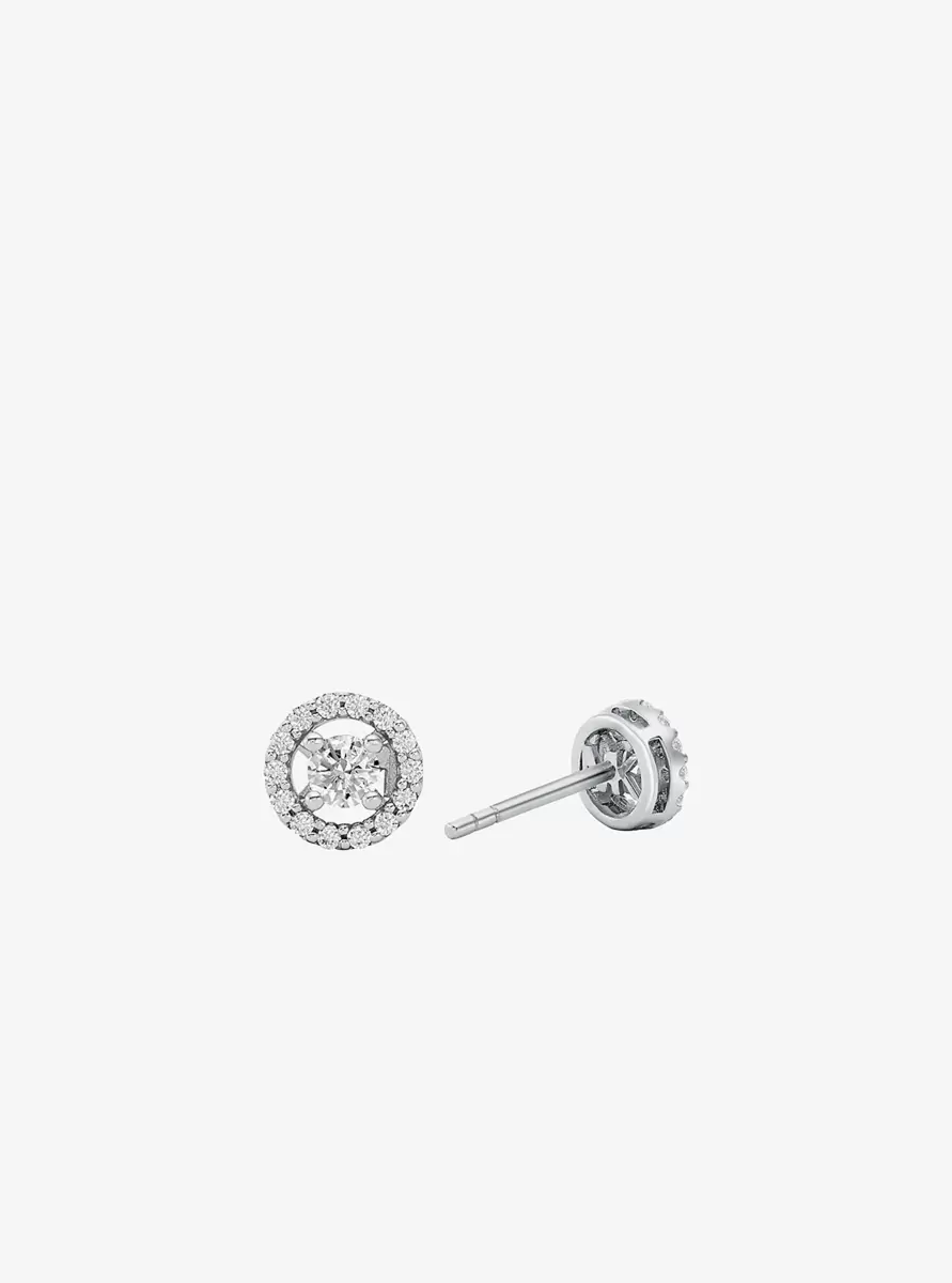 Diese Ohrstecker strahlen zeitlose Eleganz aus und sind ein echter Hingucker. Sie sind aus edelmetallplattiertem Sterlingsilber gefertigt und mit runden Zirkonia besetzt, die von einem funkelnden Halo umgeben sind. Tragen Sie sie zusammen mit der passenden Halskette oder verschenken Sie sie an einen besonderen Menschen.