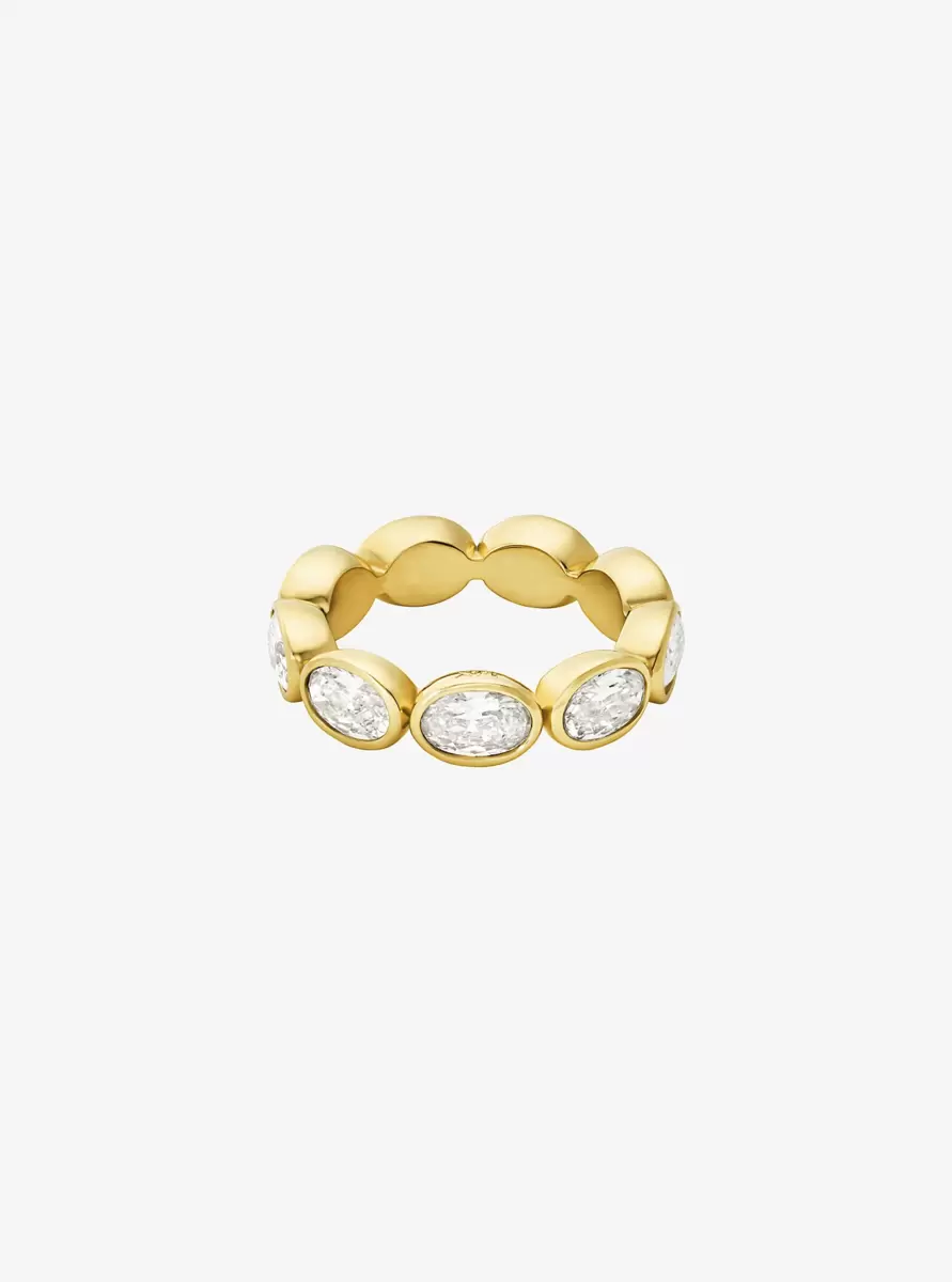 Ob als Soloring oder in Kombination mit anderen Ringen getragen – dieser Tennisring ist ein echter Hingucker. Der Ring im Eternity-Stil präsentiert funkelnde ovale Steine, eingefasst in 14-karätig vergoldetem Messing, für einen auffälligen und zugleich zeitlosen Look.