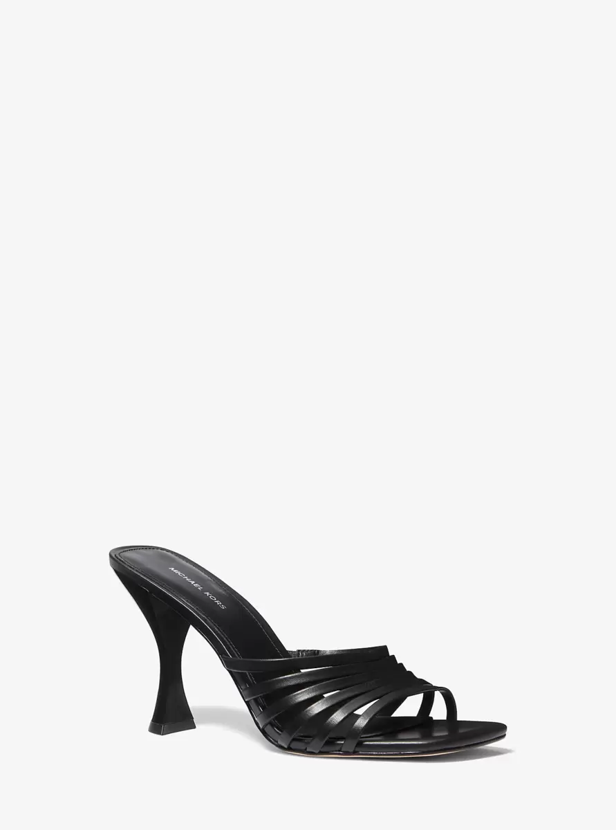 Verleihen Sie Ihren Looks, die vom Tag bis zum Abend reichen, mit unserer Haisley-Mule einen eleganten Touch. Diese Pantolette ist aus Leder gefertigt und besticht durch schmale Riemchen und einen skulpturalen, geriffelten Absatz. Tragen Sie sie zu Mini- oder Midi-Röcken.