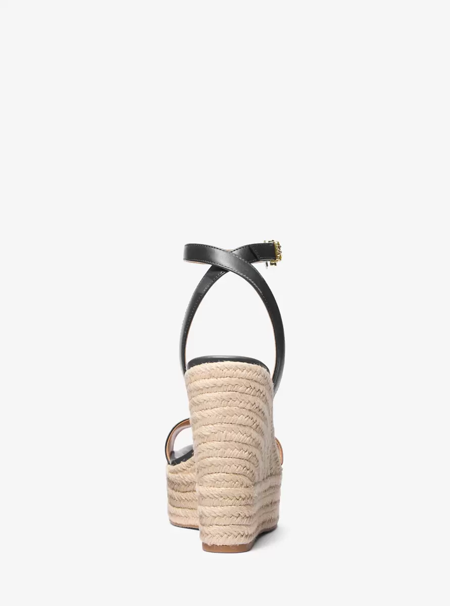 Begrüßen Sie die Sonne glamourös mit der Leighton Keilsandale. Die Lederriemen sitzen auf einer himmelhohen, mit Jute eingefassten Keilsohle, während das Plateau für Höhe sorgt, ohne den Tragekomfort einzuschränken. Kombinieren Sie sie mit allem, von einem verspielten Sommerkleid bis hin zu einem luxuriösen Strandkleid.