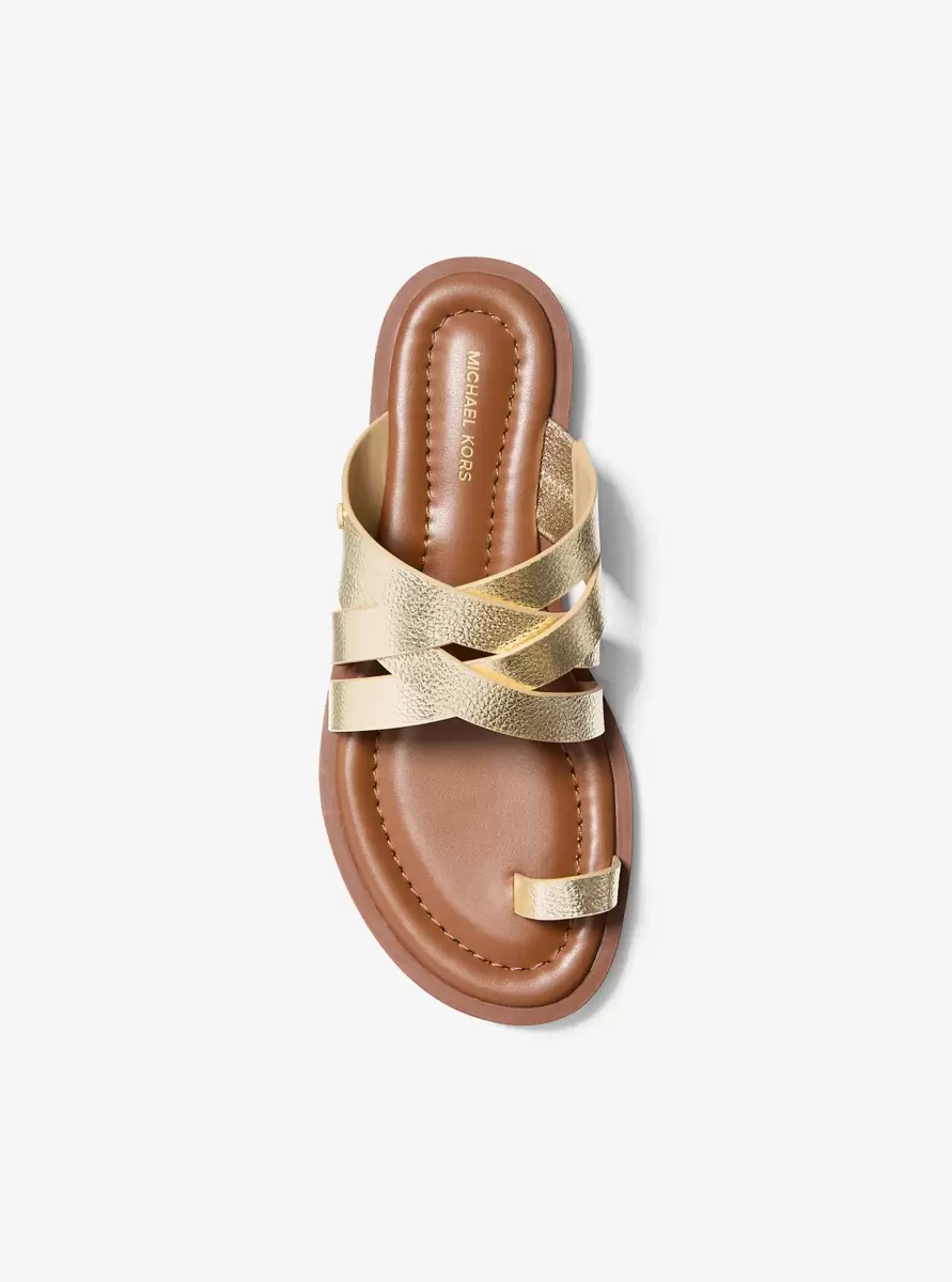 Die Nora Sandale besticht durch ihre strukturierte Optik mit gekreuzten Riemen aus Metallic-Leder und einer gestapelten Holzsohle. Sie verleiht jedem Sommer-Look mühelos Glamour.