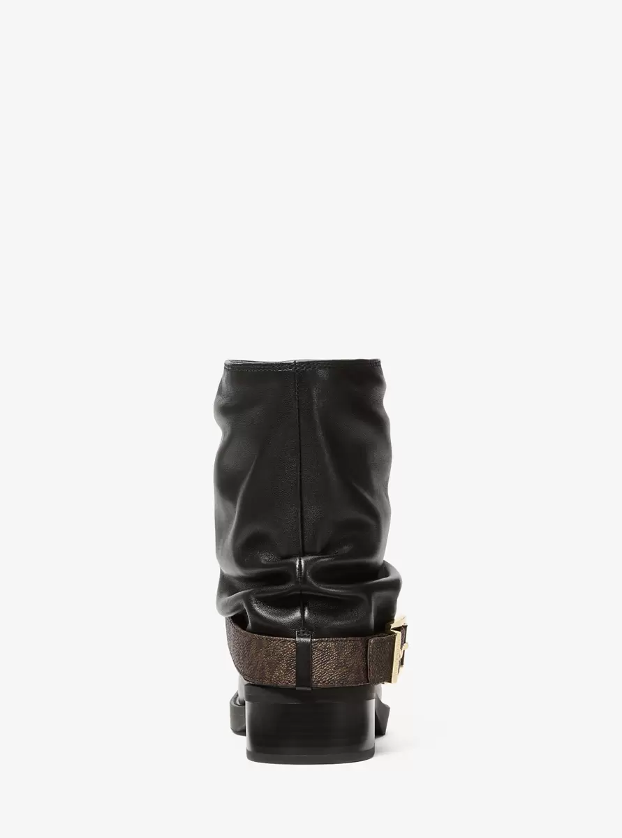Der Biker-Boot erhält mit der Colby-Stiefelette eine schicke Neuinterpretation. Gefertigt aus Glattleder mit lässigem Schaft und einem Riemen mit Logoprint und Schnalle, passt sie perfekt zu Jeans und fließenden Kleidern.