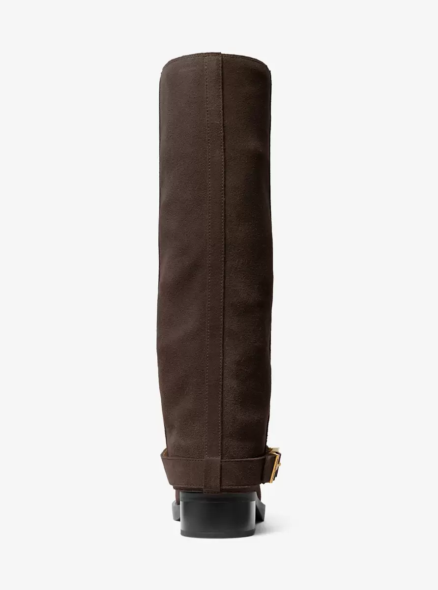 Inspiriert von den Details eines Motorradstiefels und der stromlinienförmigen Silhouette eines Reitstiefels, ist der Colby überraschend vielseitig. Gefertigt aus geschmeidigem Wildleder, passt dieser kniehohe Stiefel perfekt zu Kleidern und Shorts.