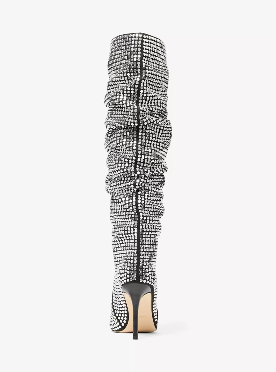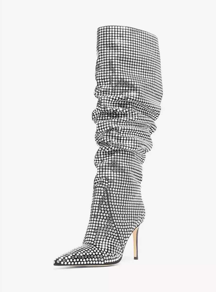 Unser kniehoher Stiefel Dawn mit Hunderten von flachen Nieten ist ein lässiger Hingucker, der jedem Outfit Struktur verleiht. Er passt perfekt zu einem Jeansminirock oder einer Skinny Jeans.