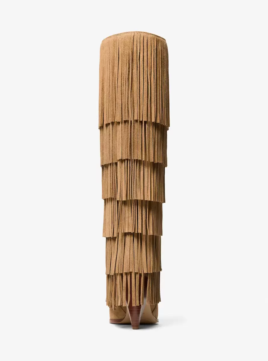 Unsere vom Westernstil inspirierten Jayla-Stiefel sind wie geschaffen zum Laufen. Charakteristisch für dieses schicke Paar sind die Fransen, die bei jedem Schritt sanft mitschwingen. Gefertigt aus butterweichem Wildleder, bestechen sie durch eine spitze Zehenpartie und einen niedrigen Blockabsatz. Kombinieren Sie sie mit einem neutralen Minikleid, um sie perfekt in Szene zu setzen.