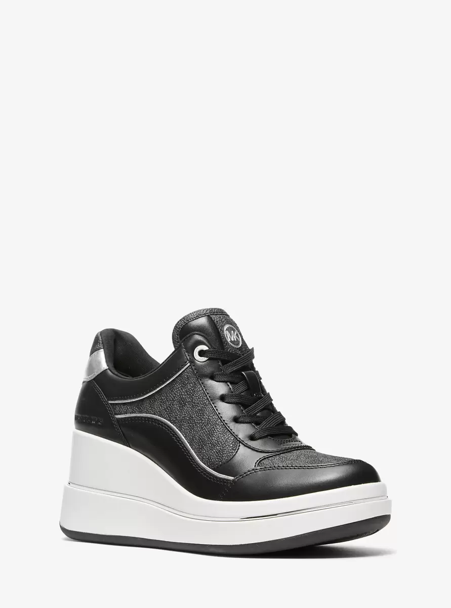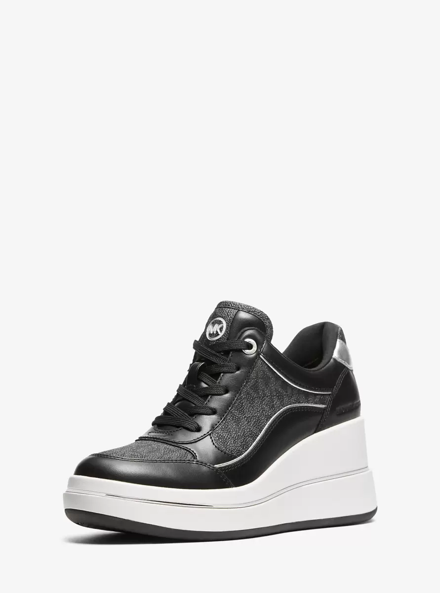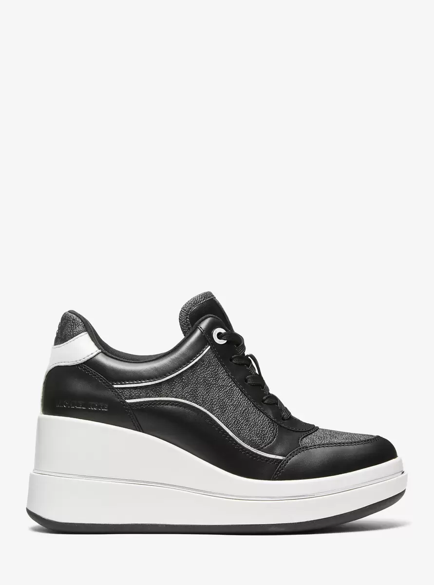 Unsere Emmy-Sneaker sind modisch und gleichzeitig super bequem für jeden Tag. Gefertigt aus edlen Leder- und Canvas-Einsätzen mit Logoprint, verfügen sie über einen Schnürverschluss und einen Keilabsatz, der für dezente Höhe und angenehmen Tragekomfort sorgt. Ob beim entspannten Brunch oder beim Erledigen von Besorgungen – mit diesen Sneakern sehen Sie immer gut aus.