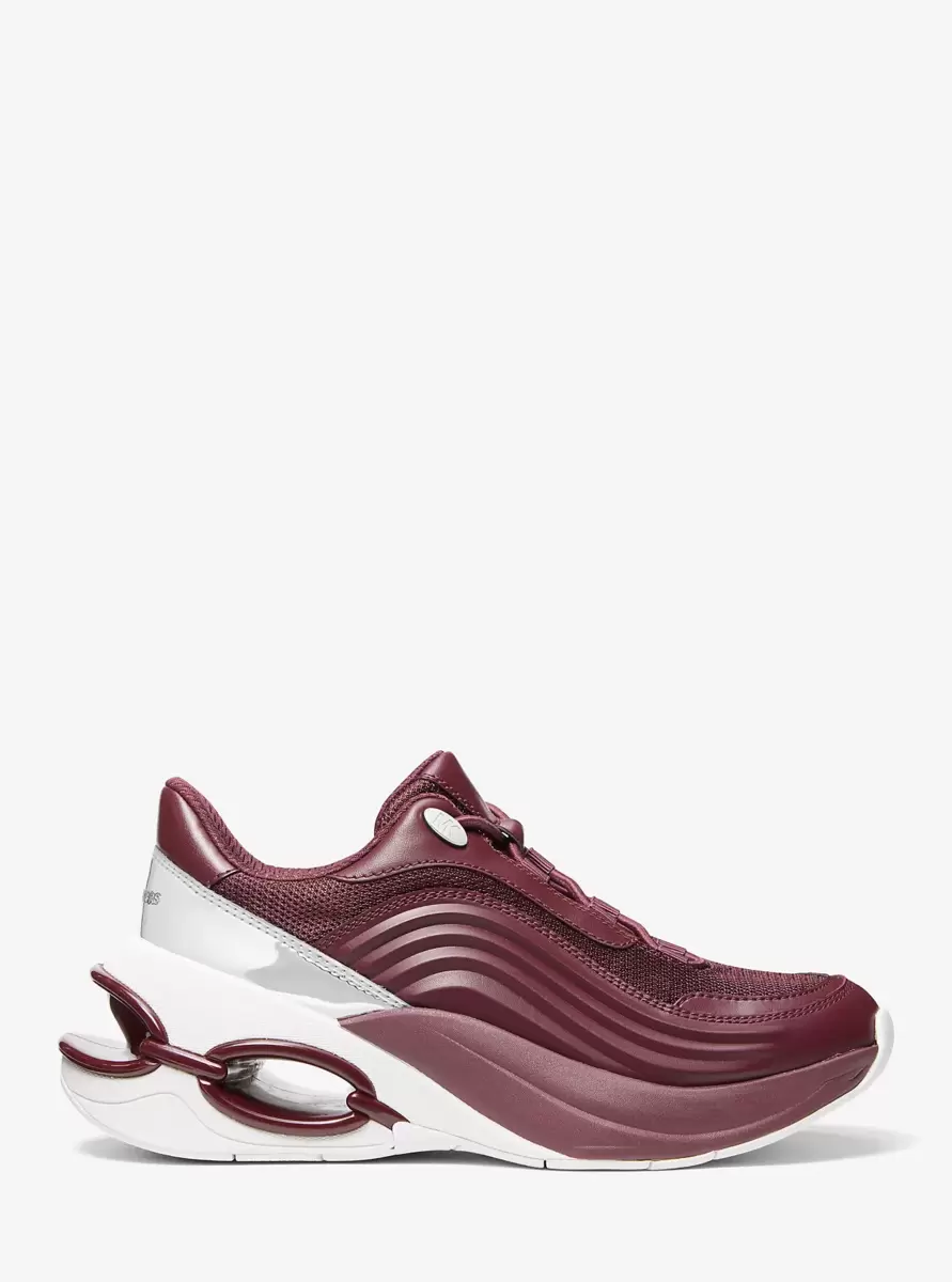 Diese Toni-Sneaker sind aus einer angenehmen Kombination aus Mesh, Gummi und glänzendem Leder gefertigt und verfügen über schmalere, elastische Schnürsenkel am Vorderfuß sowie ein strukturiertes, geschwungenes Lederpanel an den Seiten. Die markante Gummisohle mit Kettenglieder-Ausschnitten verleiht ihnen einen glamourösen Touch. Kombinieren Sie sie mit Leggings, Jeans oder Maxikleidern.