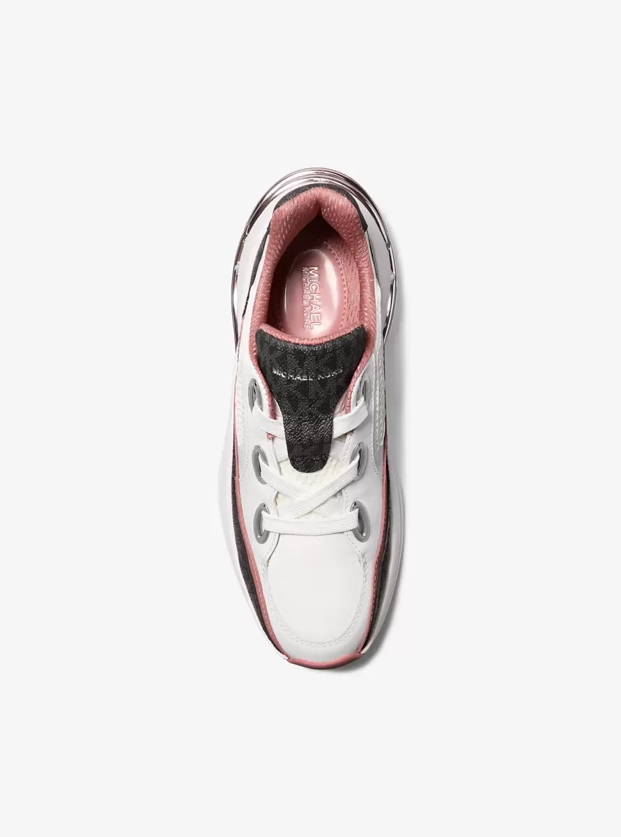 Diese Toni-Sneaker aus einer angenehm anzufassenden Kombination aus Leder, Canvas mit Logoprint und Mesh setzen mit jedem Schritt ein modisches Statement. Ösen für die Schnürsenkel und eine markante Gummisohle mit Kettenglieder-Ausschnitten verleihen ihnen einen glamourösen Touch. Kombinieren Sie sie mit Leggings, Jeans oder Maxikleidern.