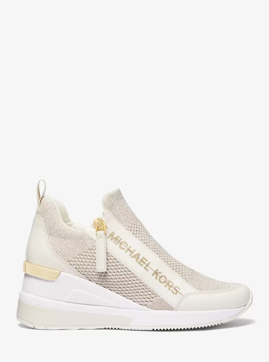 Der Willis Wedge-Sneaker, erkennbar an unserem Markenlogo an der Seite, verleiht jedem Outfit das gewisse Etwas. Gefertigt aus atmungsaktivem Metallic-Stretch-Strick, bietet er optimalen Tragekomfort und lässt sich dank des Reißverschlusses mühelos an- und ausziehen. Kombinieren Sie ihn mit passenden Sportteilen für einen lässig-coolen Look.