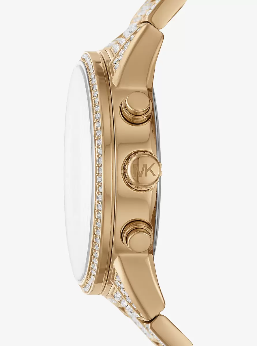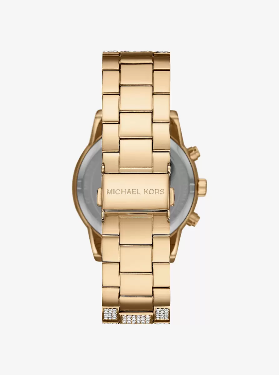 Die strahlende und elegante Bryant-Uhr vereint goldfarbenen Edelstahl mit einem von Herrenmode inspirierten Armband zu einem schicken und zeitlosen Design. Die Chronographenanzeige sorgt für Funktionalität, während die Pavé-Verzierungen maximalen Glanz verleihen.