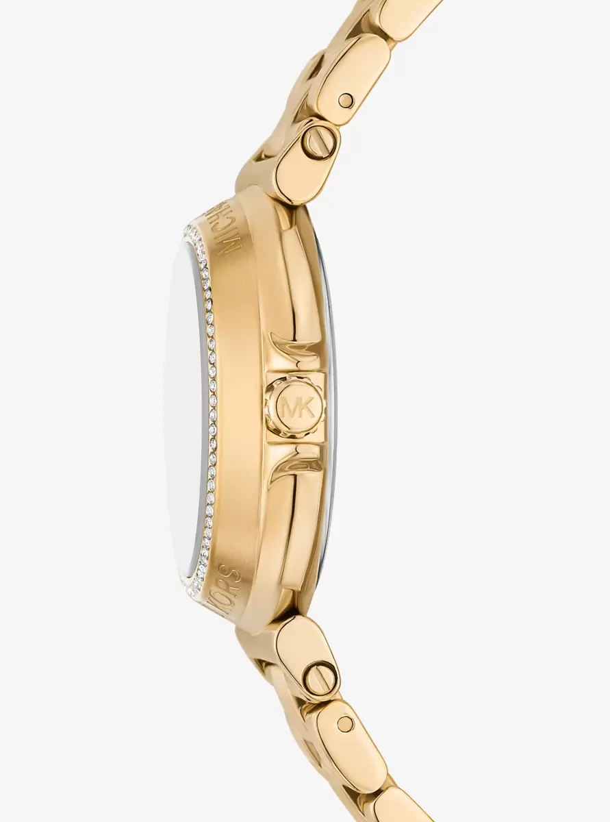 Zarte Pavé-Verzierungen umgeben die Lünette der eleganten Maren-Uhr und verleihen ihrer ansonsten schlichten Silhouette genau die richtige Portion Glanz. Gefertigt aus goldfarbenem Edelstahl und komplett mit einem Armband, ist dies ein Zeitmesser, den Sie viele Jahre lang schätzen werden.
