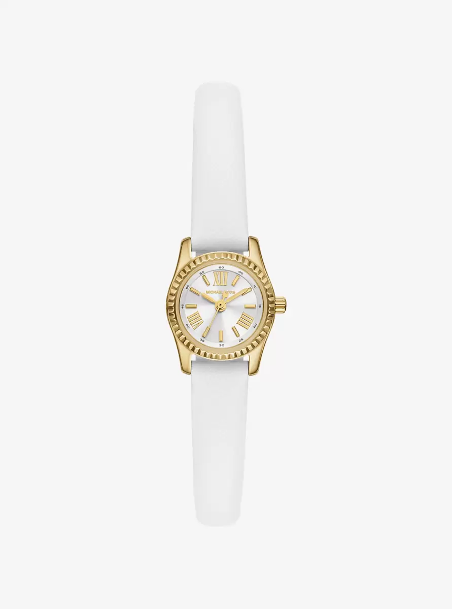 Ein luxuriöses Lederarmband und goldfarbene Beschläge vereinen sich in unserer eleganten Lexington-Uhr. Mit ihrem aufwendig gravierten Lünettendeckel und dem zierlichen runden Gehäuse ist sie eine feine Ergänzung für jedes funkelnde Uhren-Ensemble.