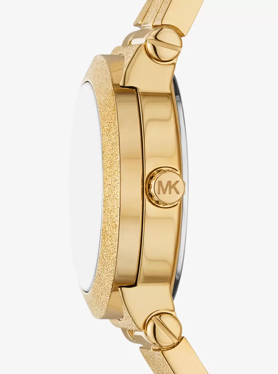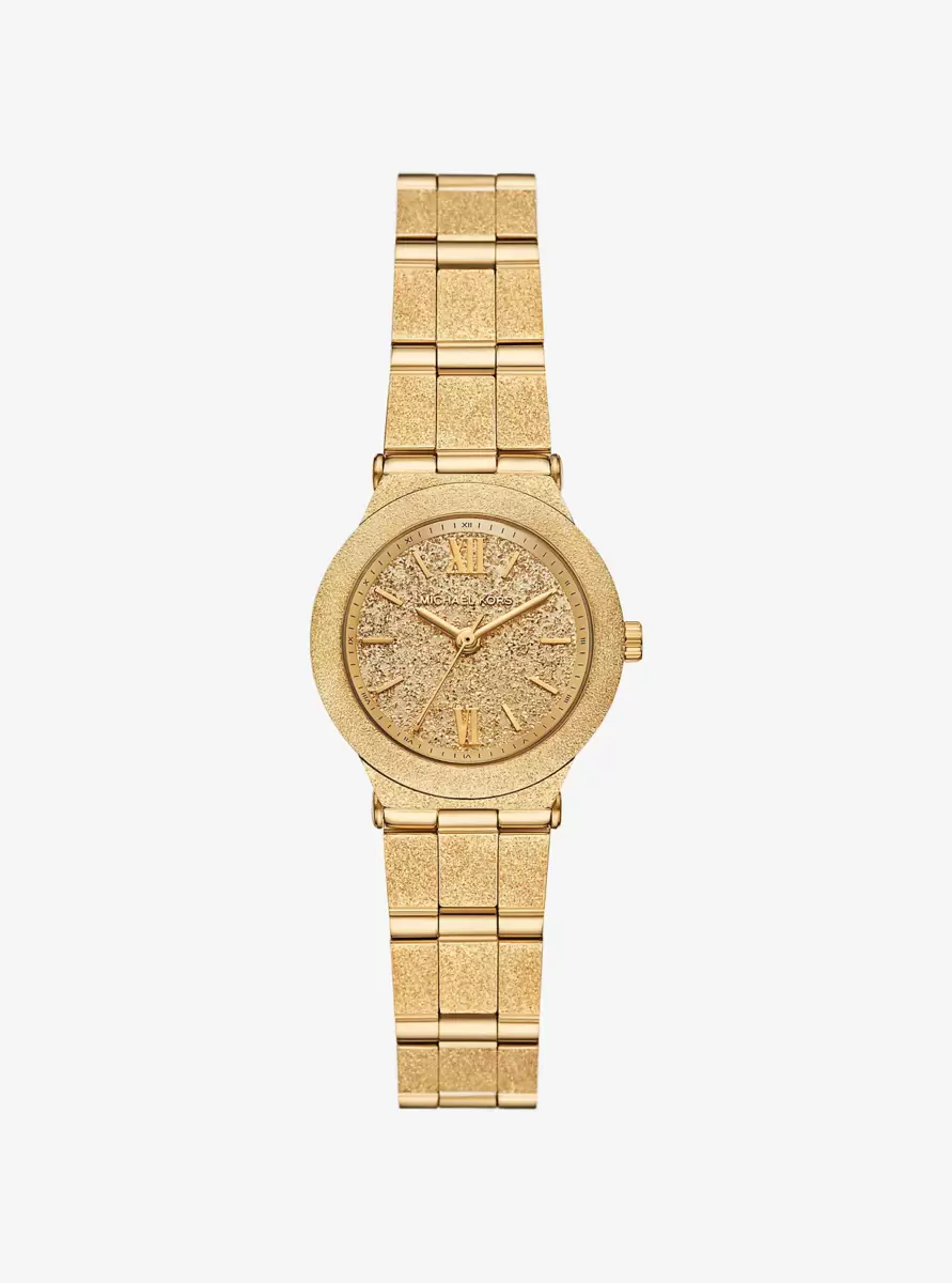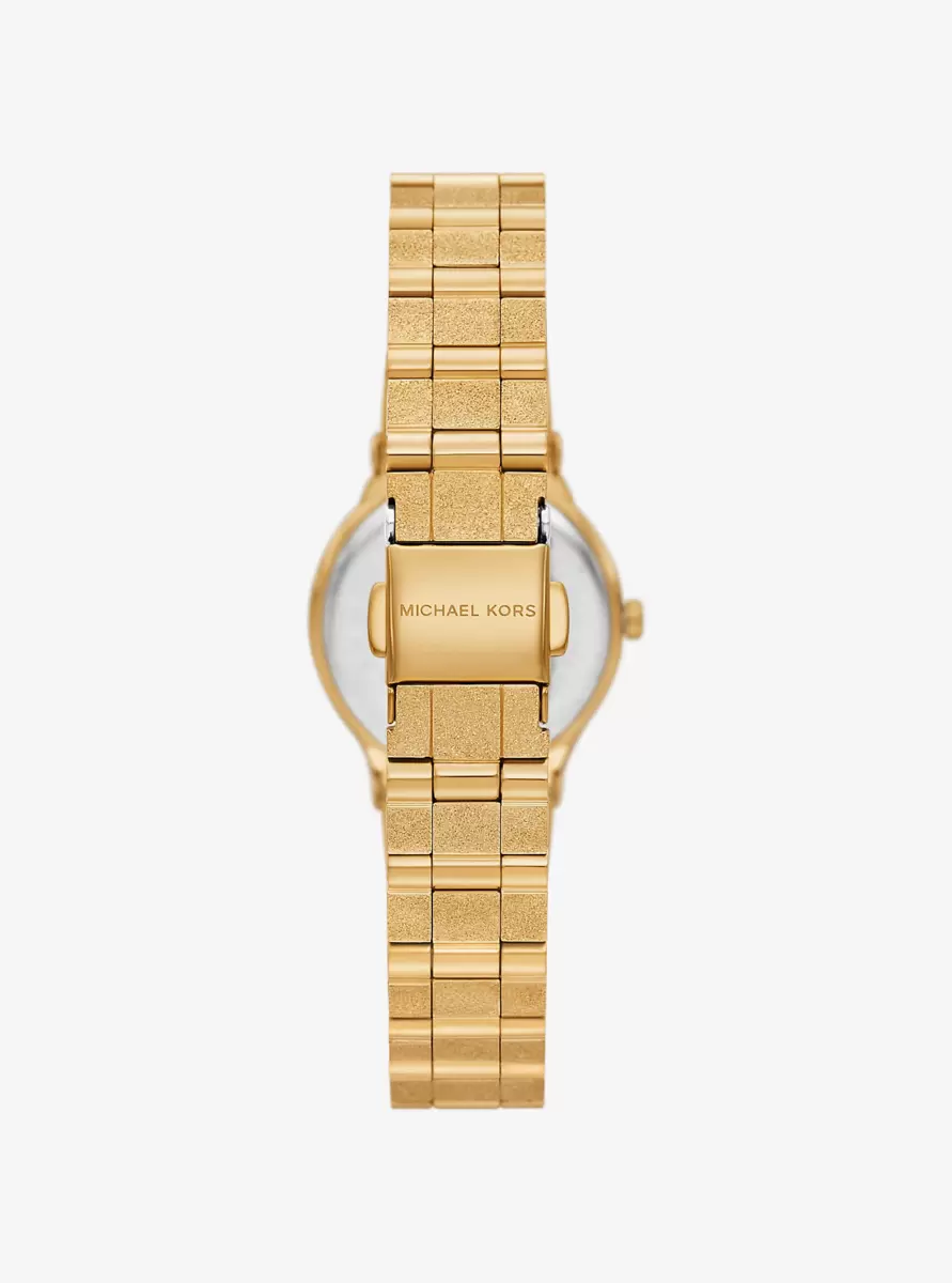 Diese elegante Uhr, eine zierliche Version unserer beliebten Billie, besticht durch ihr atemberaubendes, mattiertes Finish und das funkelnde Zifferblatt. Das Armband aus goldfarbenem Edelstahl fängt das Licht wunderschön ein und verleiht der Uhr einen zarten und zugleich glamourösen Stil, der zu jedem Anlass passt.