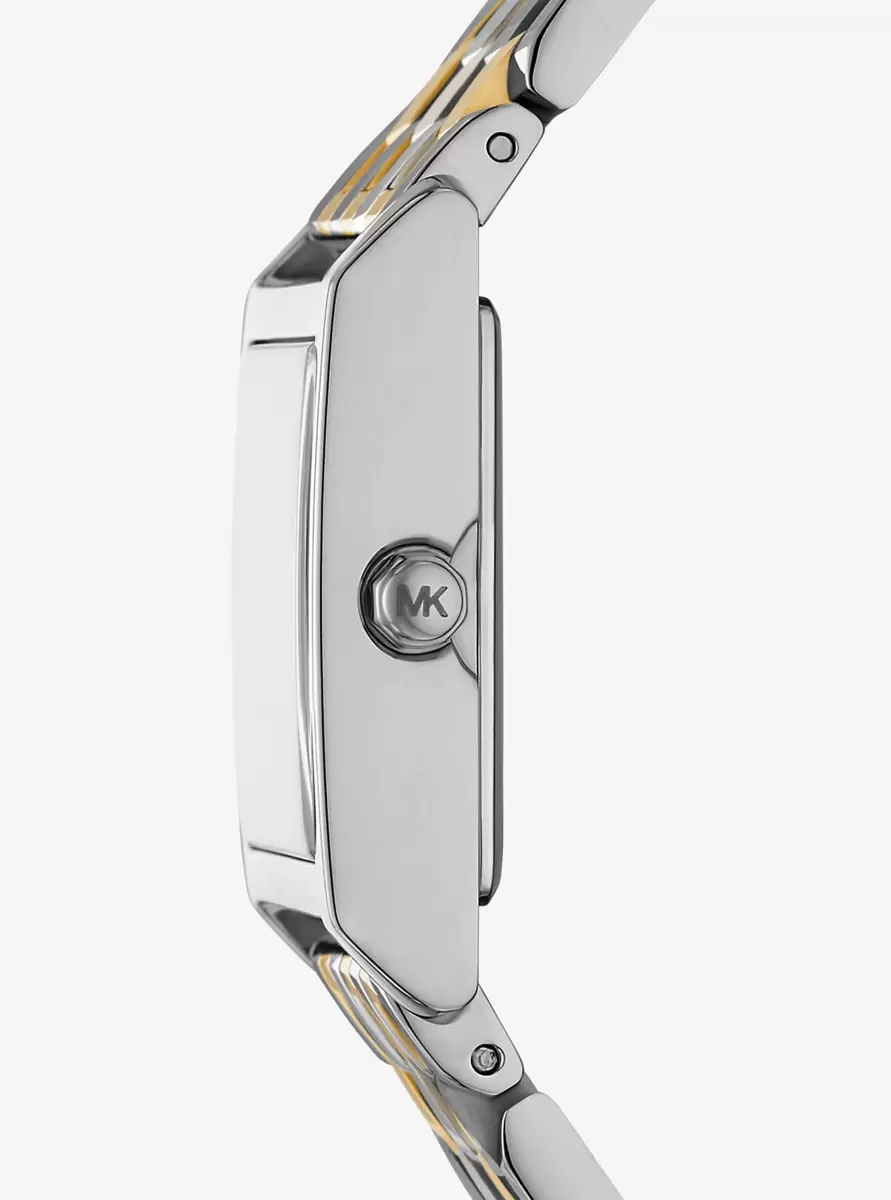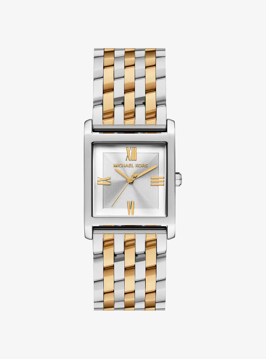Die zierliche Georgie-Uhr besticht durch ihre elegante, quadratische Form und das markante zweifarbige Design. Gefertigt aus Edelstahl mit abwechselnd silber- und goldfarbenen Elementen, bietet diese elegante Uhr dezenten Luxus und ist perfekt für den Alltag und besondere Anlässe.
