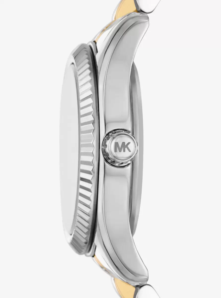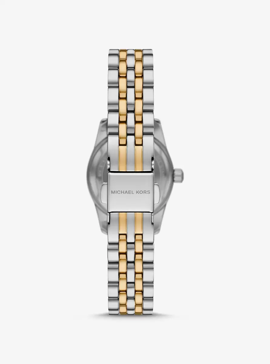 Die Lexington-Uhr verströmt mit ihren Silber- und Goldtönen und funkelnden Pavé-Akzenten pure Eleganz für jeden Tag. Die komplett aus Edelstahl gefertigte Mini-Uhr besticht durch ein rundes Zifferblatt mit abgeschrägter Lünette und ein zweifarbiges Armband. Tragen Sie sie und verleihen Sie Ihren Outfits – ob tagsüber oder abends – einen Hauch von raffiniertem Charme.
