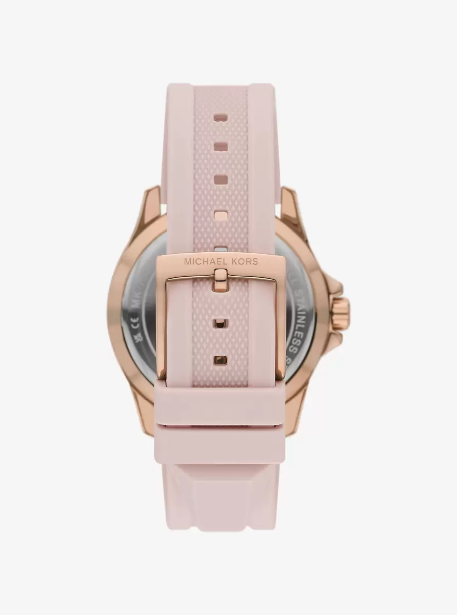 Die legendäre Everest-Uhr ist zurück – mit sportlichen Details wie einem Silikonarmband für ganztägigen Tragekomfort. Das roségoldfarbene Edelstahlgehäuse ist besonders robust, und das Zifferblatt mit Logogravur setzt ein unverwechselbares Statement, ohne die Funktionalität einzuschränken.
