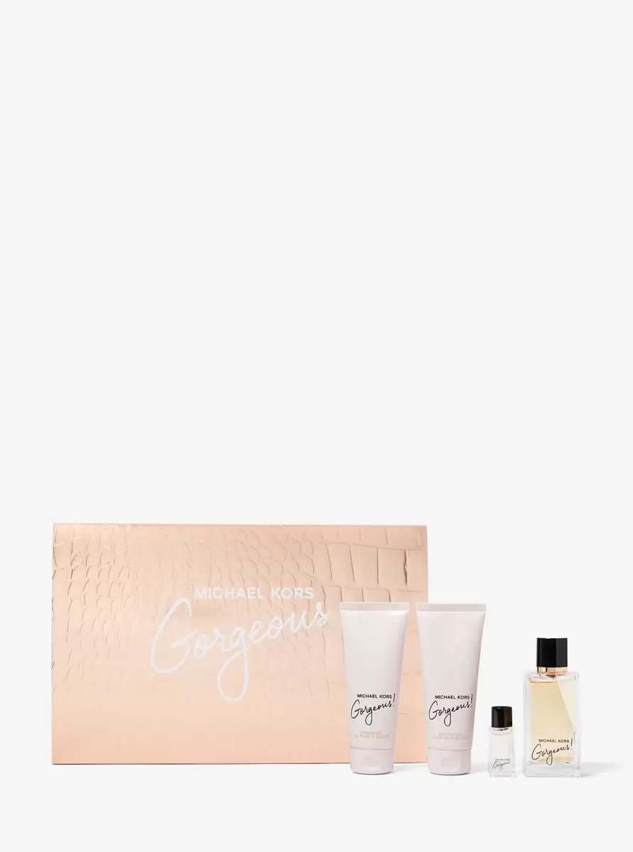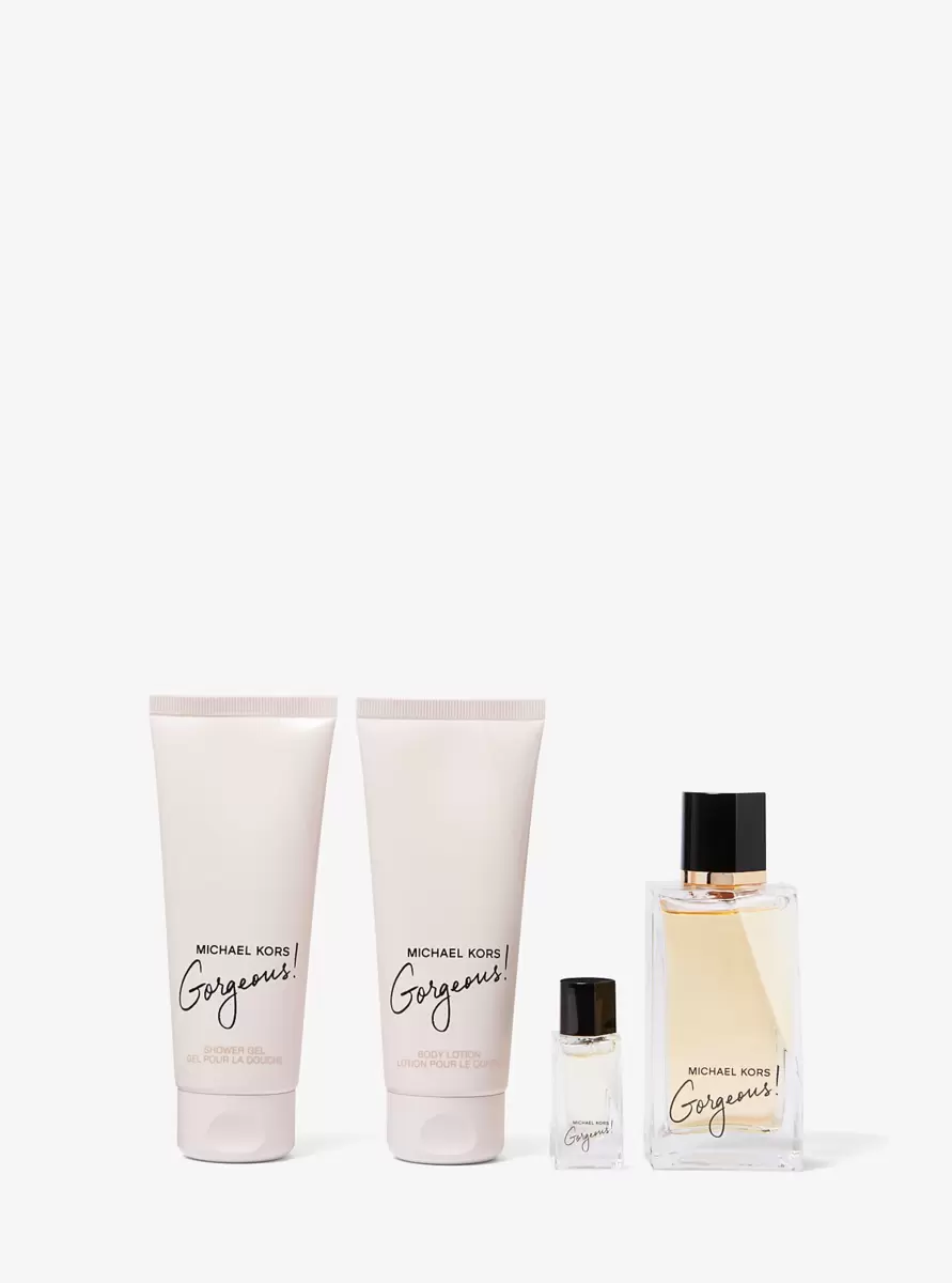 Michael Kors Gorgeous ist ein kühner, blumig-holziger Duft, der Schönheit in all ihren Facetten verkörpert. Als moderne Interpretation eines klassischen weißen Blumenstraußes entfaltet sich Michael Kors Gorgeous durch ein fesselndes Blumenarrangement, umhüllt von einem warmen Tabakakkord und abgerundet durch eine holzige Basisnote. Tauchen Sie ein in das Gefühl eines luxuriösen Kurzurlaubs mit diesem traumhaften Duft, der alles noch schöner macht. Das 4-teilige Geschenkset enthält ein Eau de Parfum Spray, eine Reisegröße, eine Bodylotion und ein Duschgel.