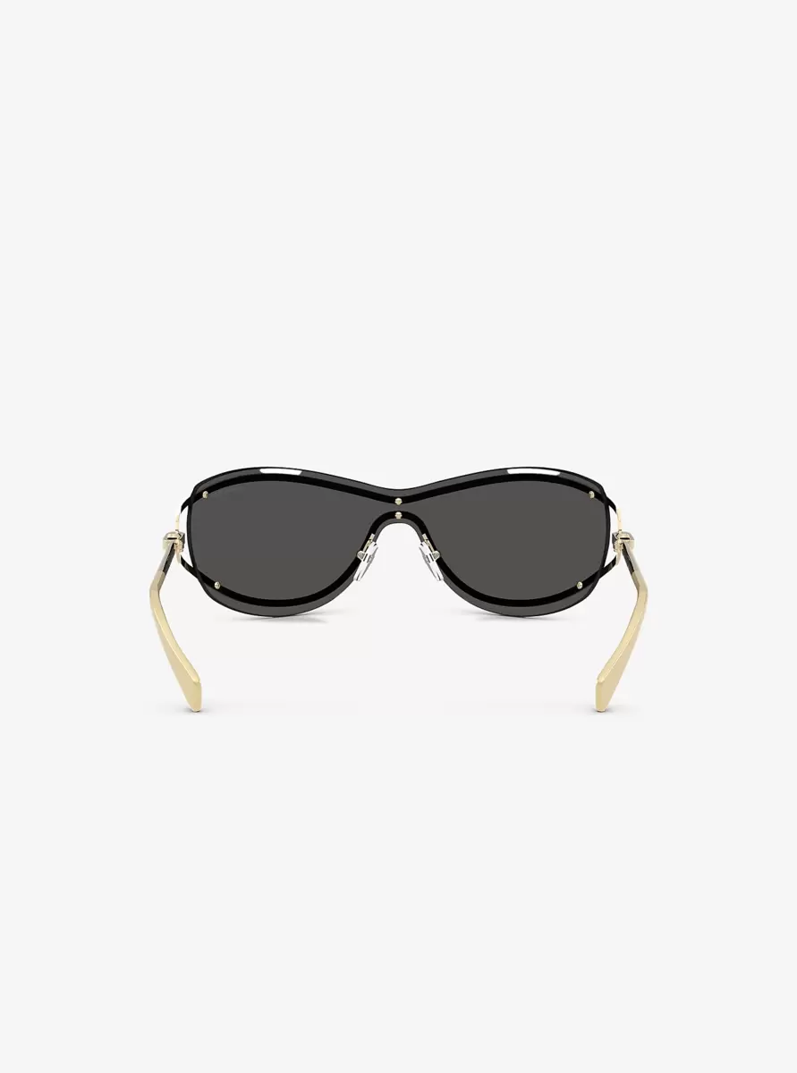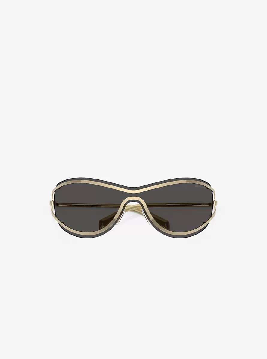 Sportlich und glamourös zugleich: Unsere La Praia Sonnenbrille besticht durch ihre schildförmigen Gläser und den metallischen Rahmen. Die schmalen Bügel sind mit unserem Logo verziert und verleihen der Brille so ein unverwechselbares Finish.