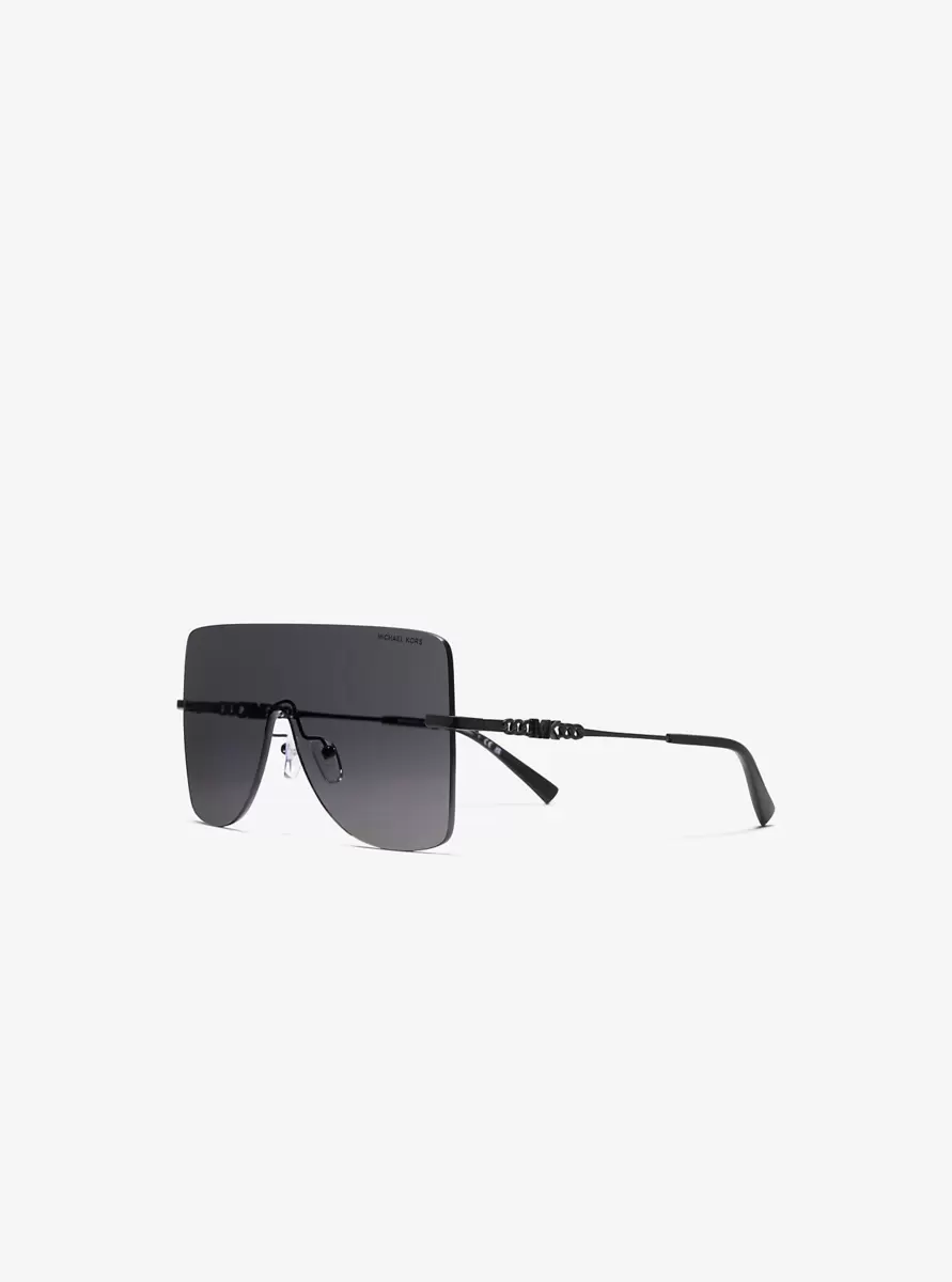 Unsere London-Sonnenbrille verkörpert einen auffälligen Stil. Mit ihrem übergroßen Rahmen für einen ultramodernen Look ist diese schildförmige Brille mit einem dezenten „MK“-Detail an den Bügeln versehen. Der leichte Rahmen bietet ein angenehmes Tragegefühl und ist gleichzeitig robust genug für den ganzen Tag.
