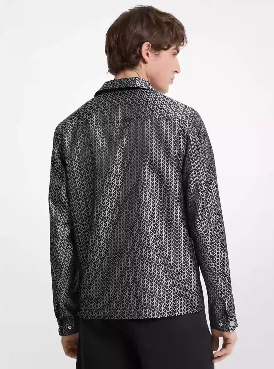 Diese Jacke mit Kragen und Reißverschluss ist eine willkommene Ergänzung für Ihre Garderobe und besticht durch ein abstraktes Logomuster mit geometrischem Motiv. Gefertigt aus einem leichten Funktionsmaterial, ist sie die perfekte Ergänzung für die Übergangszeit.