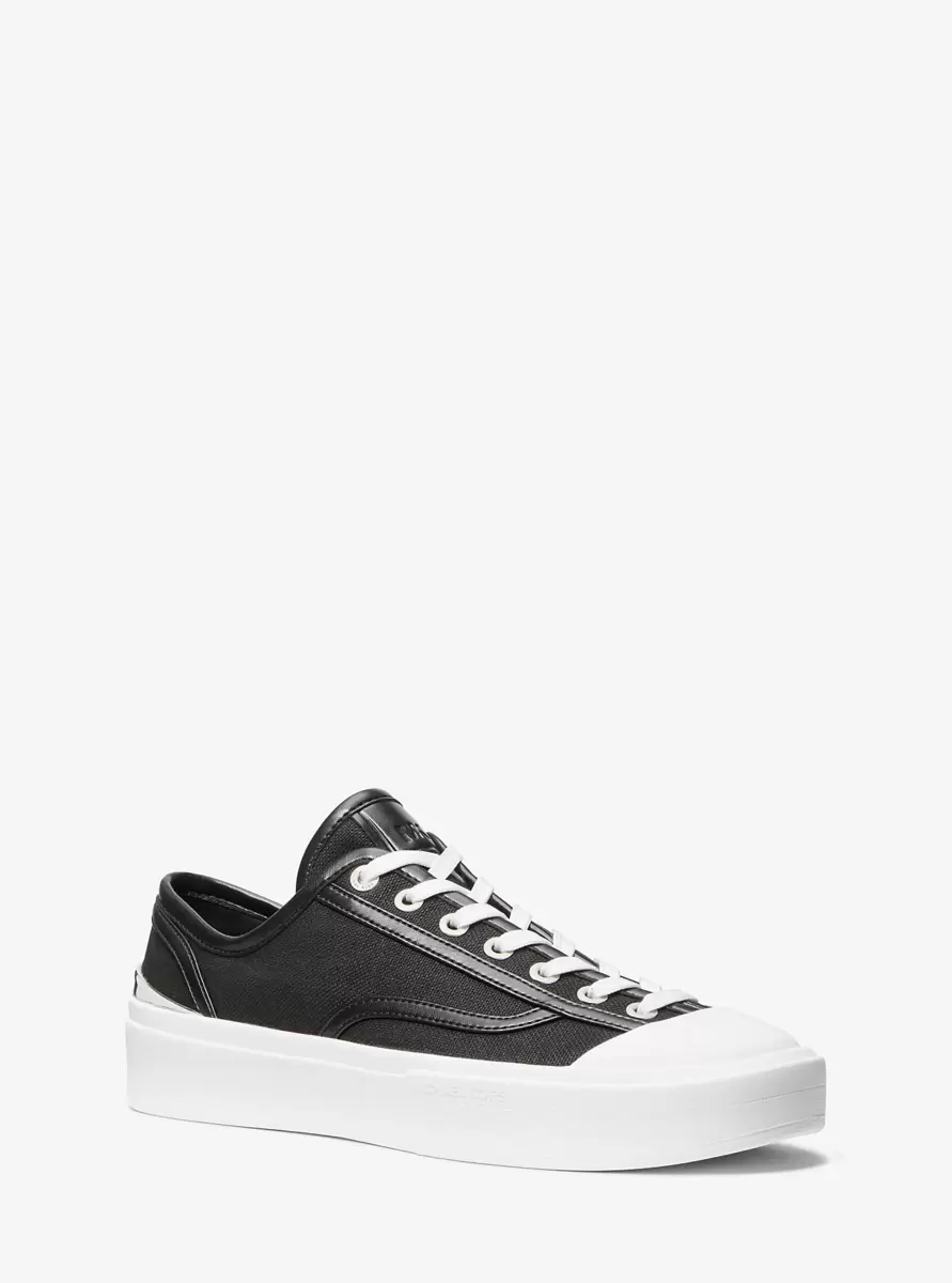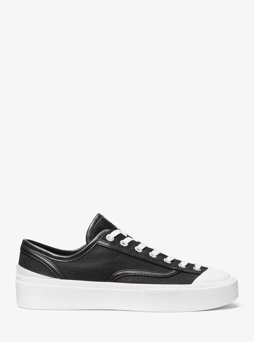 Unser Jude Schnürsneaker ist ein echter Allrounder, der zu allem passt. Im klassischen Skater-Design mit Gummikappe ist er aus strapazierfähigem Leinen-Baumwoll-Canvas mit Besatz aus Glattleder gefertigt. Wir lieben den lässigen Look dieses Sneakers, besonders in Kombination mit einem eleganten Kleid.