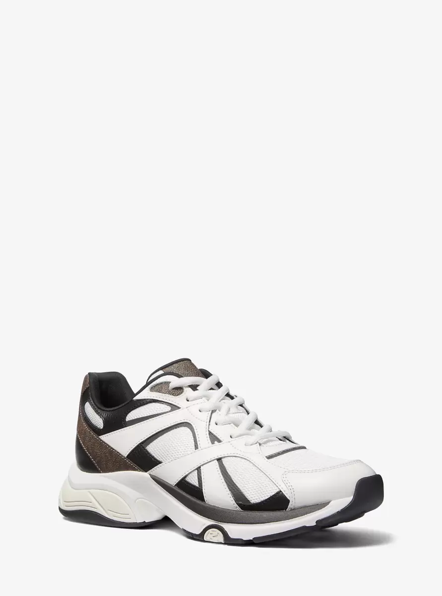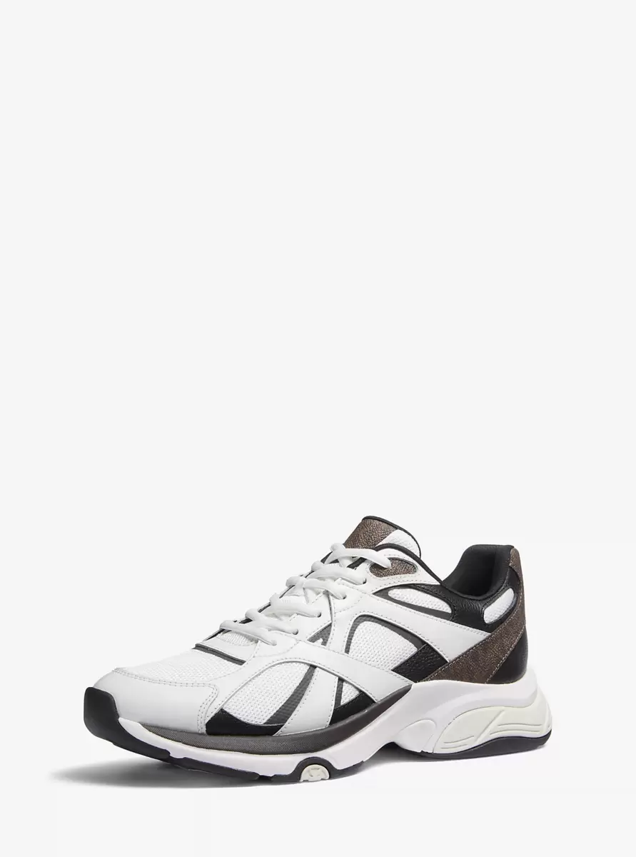 Unsere Leo-Sneaker sind die perfekten sportlichen Begleiter für einen lässigen Freizeitlook. Atmungsaktives Mesh, kombiniert mit Canvas und Leder im Signature-Print, sorgt für einen eleganten Look, während die Gummisohle für angenehmen Tragekomfort garantiert. Sie werten jedes Outfit auf – vom Workout über die Freizeit bis hin zu anderen Anlässen.
