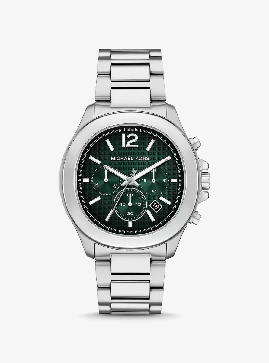 Unsere Sage-Uhr wurde für den aktiven Alltag entwickelt und besticht durch ihr schlankes und modernes Design. Das grüne Zifferblatt bildet einen markanten Kontrast zu den Edelstahl-Komponenten, während die Datumsanzeige und das Chronographenwerk dieses dynamische Modell abrunden.