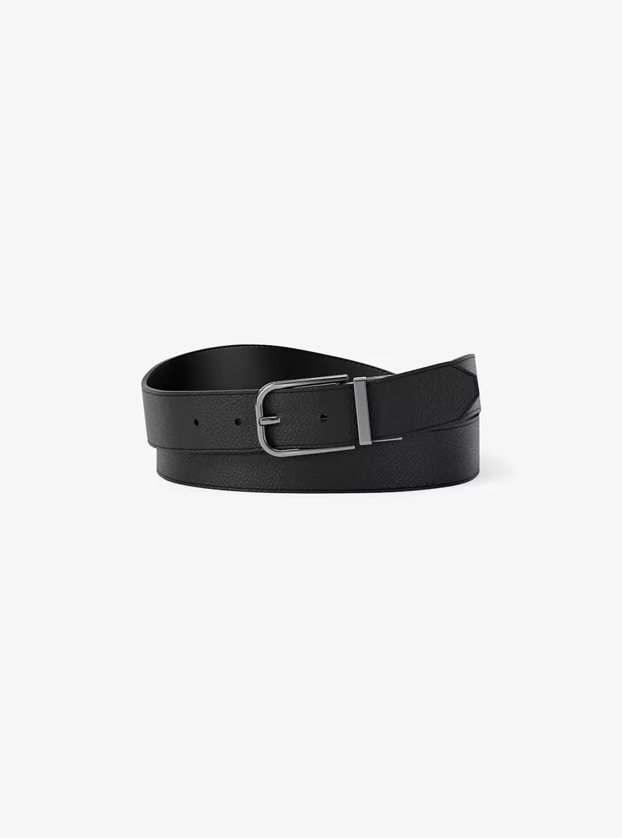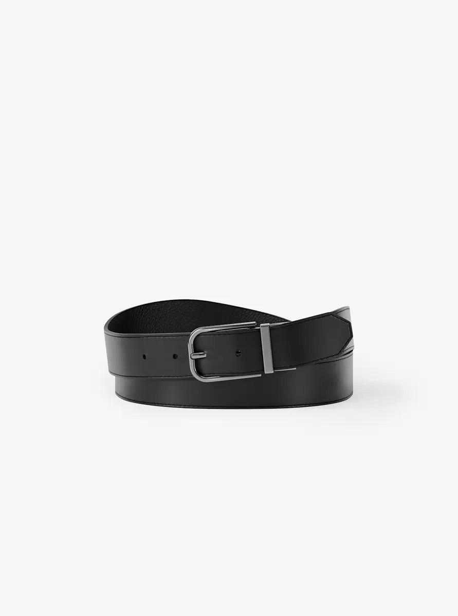 Klassisch und vielseitig: Dieser Gürtel aus genarbtem Leder mit edler Textur besticht durch eine polierte Schnalle in Gunmetal-Optik und eine glatte Rückseite. Er ist ein unverzichtbares Accessoire für elegante Anzüge und lässige Wochenend-Looks.