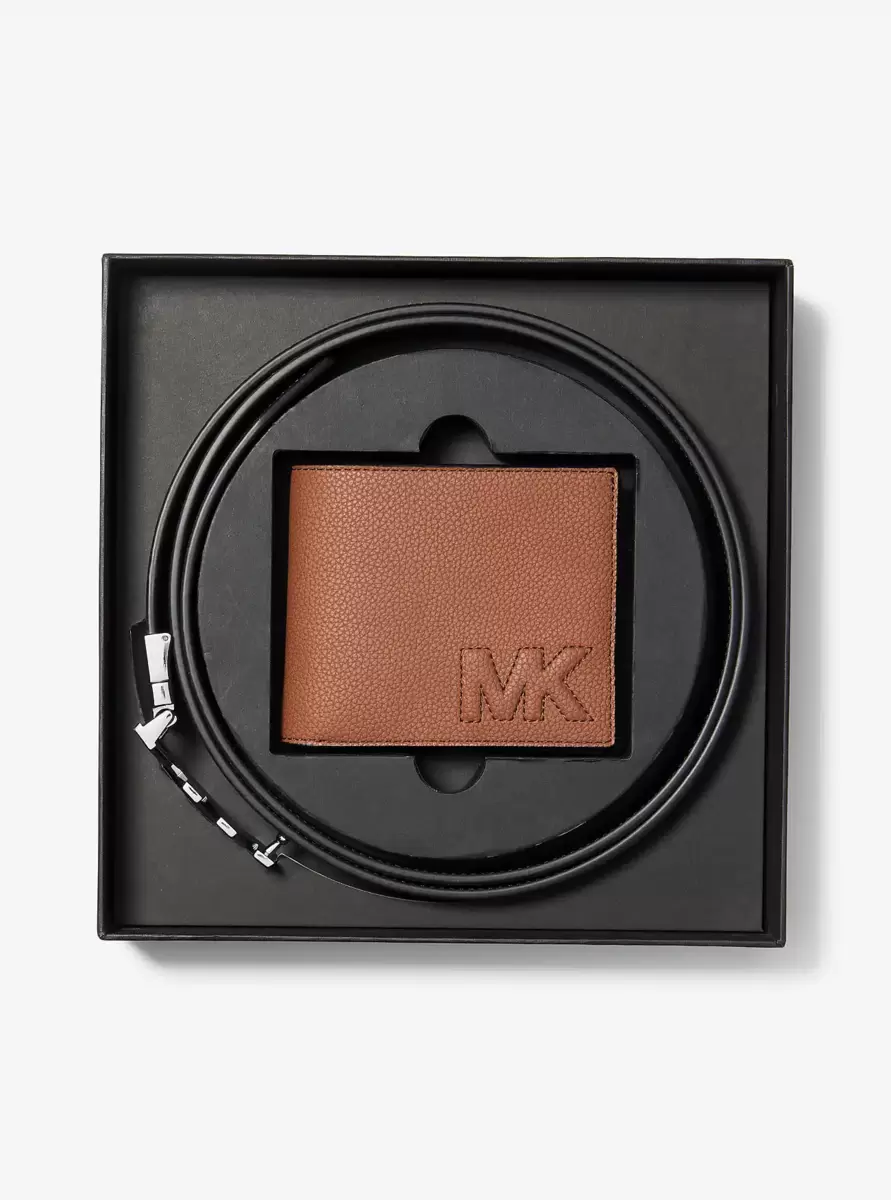 Michael Kors – seit 1981 Inbegriff modernen Glamours. • Set aus Geldbörse und Gürtel • Polyurethan-Mischgewebe • 42 % Polyurethan/40 % Polyester/18 % Polyurethan • Geldbörse: 10,9 cm B x 9,1 cm H x 1,9 cm T • Beschläge in Gunmetal-Optik • Innenausstattung: 6 Kartenfächer, 2 Einsteckfächer, Geldscheinfach • Importiert • Artikelnummer: 36S5LGFY6B