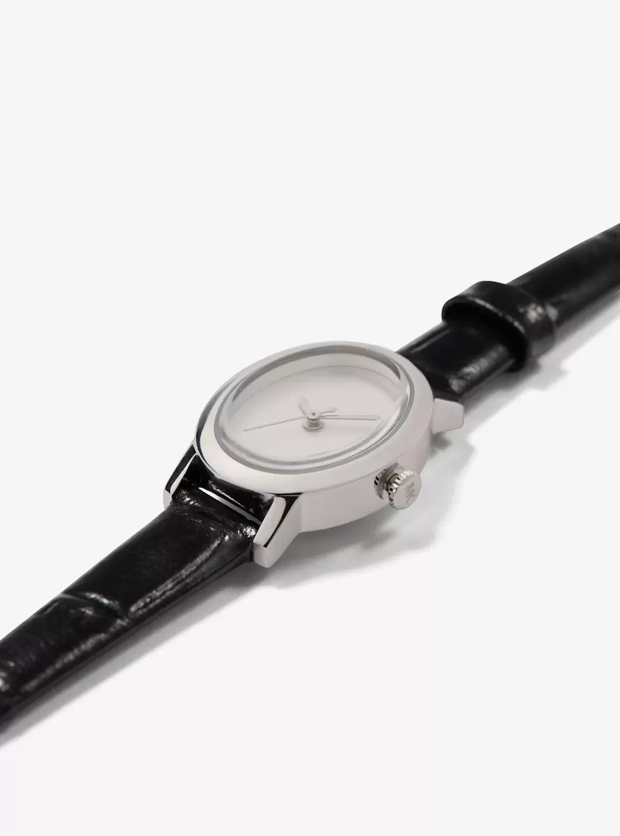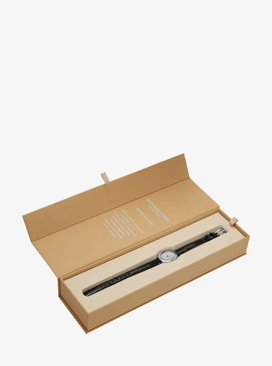Limitierte Petite Maude Uhr in Silberoptik und mit Krokodilprägung