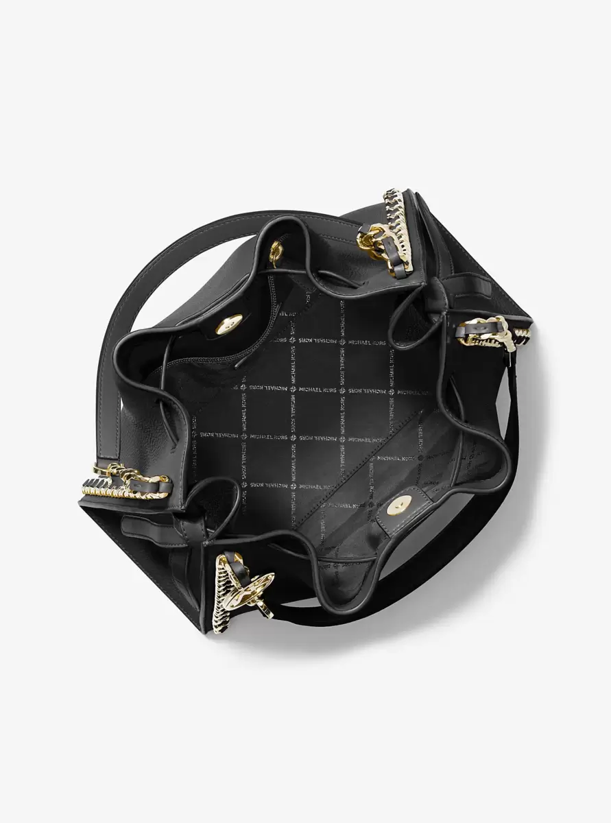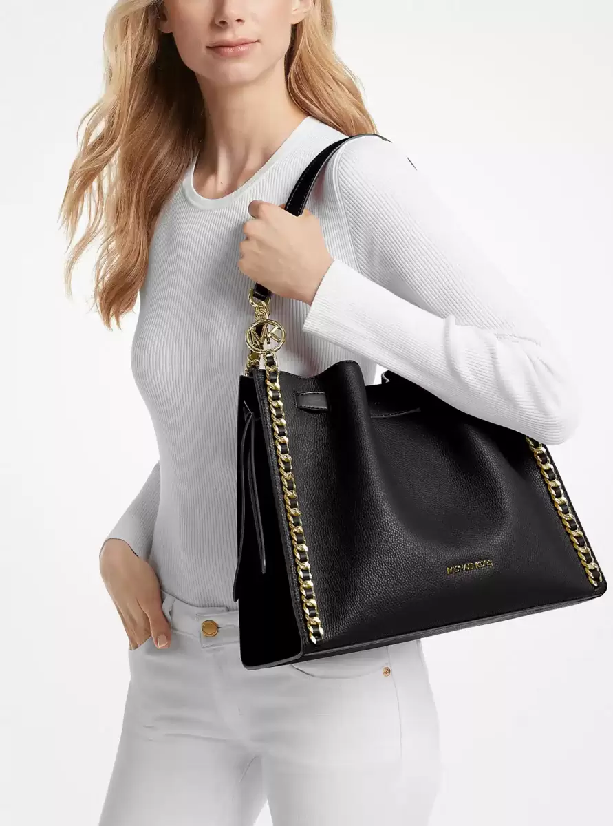 Unsere Mina-Tasche ist ein zeitloser Klassiker für jeden Tag. Mit ihrem geräumigen Innenraum und den glänzenden Kettendetails, die ihr einen Hauch von Glamour verleihen, ist sie die perfekte Tasche, um sie lässig über die Schulter zu werfen und so mühelos vom Tag in die Nacht zu wechseln.