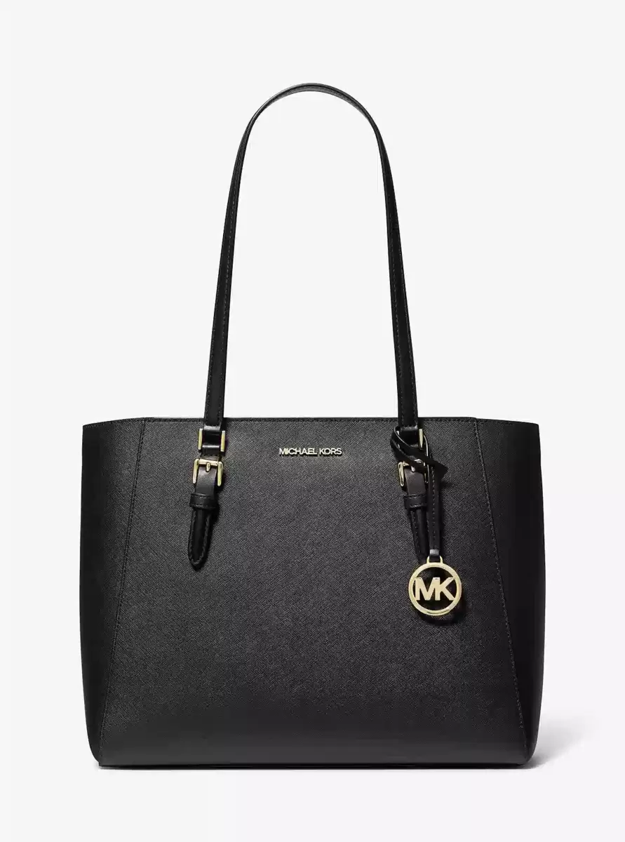 Unsere Charlotte-Tragetasche aus Saffiano-Leder ist eine zeitlose Ergänzung für Ihre Garderobe. Sie verfügt über ein Innenfach für schnellen Zugriff auf Ihr Handy und Ihre Schlüssel. Der Reißverschluss oben öffnet sich zu einem geräumigen Innenraum, der Platz für Ihre wichtigsten Dinge für einen Tag im Büro bietet – plus Wechselkleidung fürs Fitnessstudio. Ein abnehmbarer Anhänger verleiht dieser Tasche einen begehrenswerten Charme.