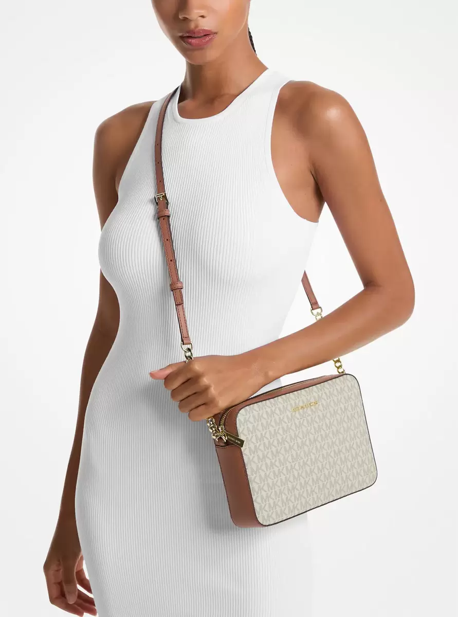 Mit ihrer klaren Linienführung und dem charakteristischen Logoprint ist die Jet Set Crossbody-Tasche ein echter Klassiker. Goldfarbene Beschläge unterstreichen den luxuriösen Look, während das geräumige Innere für optimale Organisation Ihrer wichtigsten Dinge sorgt.