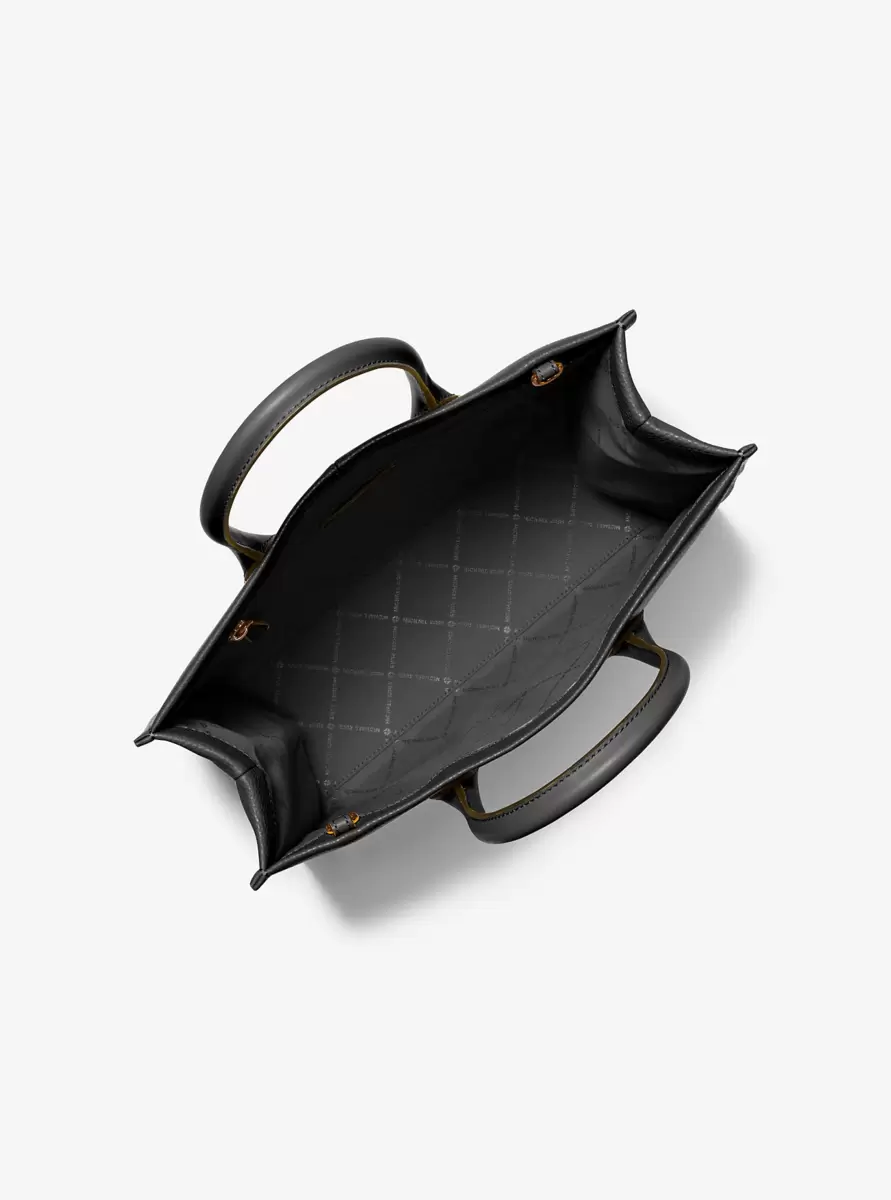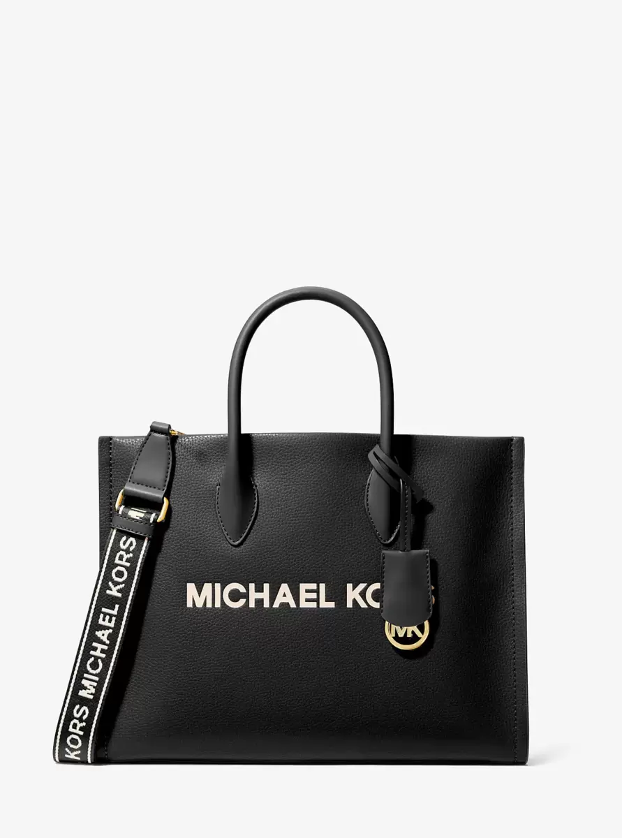 Die Mirella Tote Bag aus genarbtem Leder besticht durch ihre strukturierte Silhouette, den ikonischen Markenschriftzug und einen polierten Logo-Anhänger für ein besonders luxuriöses Finish. Mit ihren eleganten Tragegriffen und dem gewebten Schulterriemen wird diese Tasche schnell zu Ihrem neuen Lieblingsbegleiter für tagsüber. Kombinieren Sie sie mit Jeans und einem klassischen weißen Hemd.