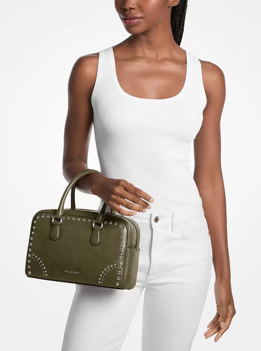 Thompson Medium Distressed Studded Satchel