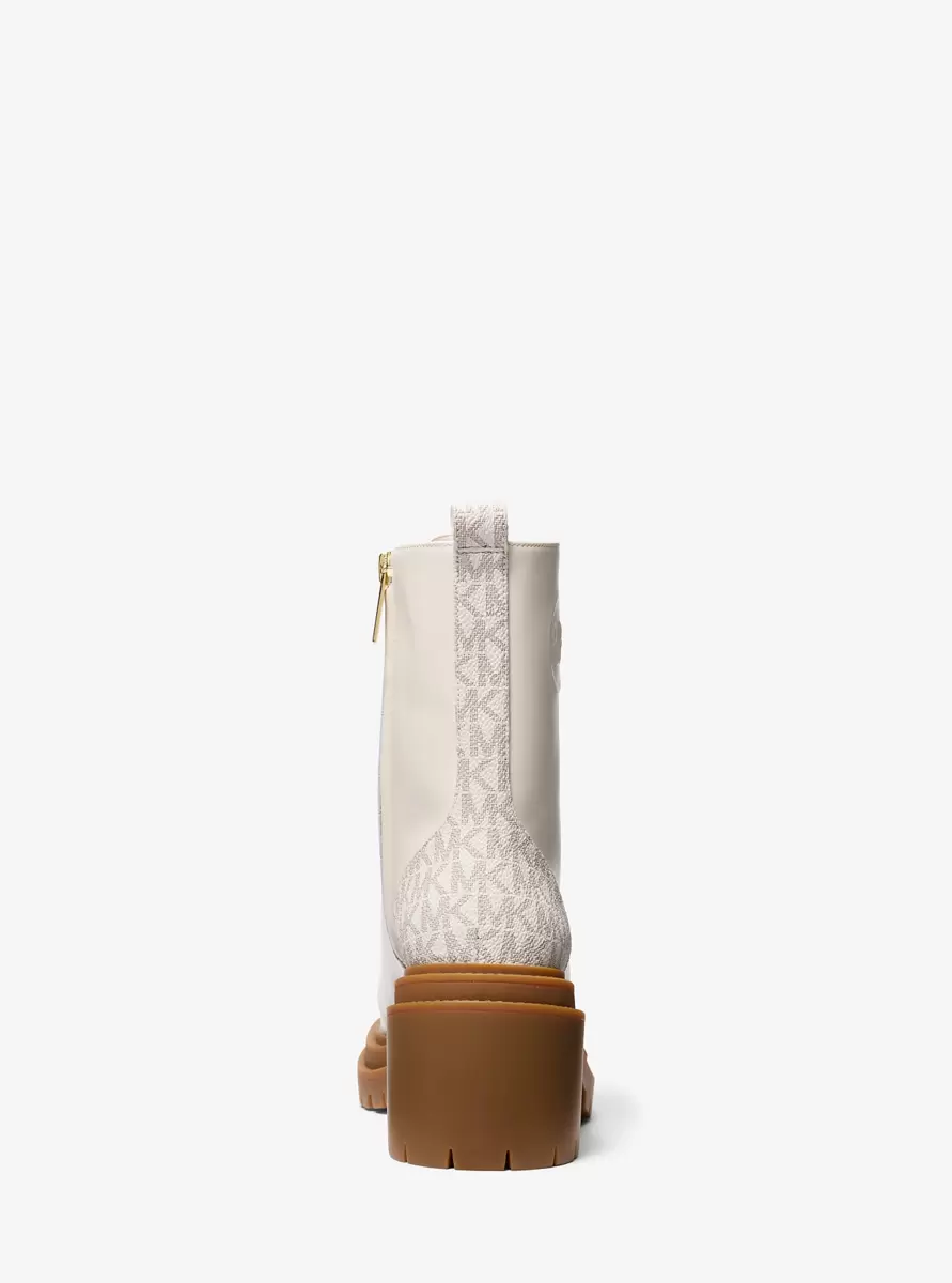 Unser Hanley-Stiefel ist ein klassischer Combat-Style mit einem Hauch von City-Chic. Dieses auffällige Paar ist aus Glattleder gefertigt, mit Akzenten im Signature-Logoprint versehen und mit einer robusten Profilsohle ausgestattet, die optimalen Halt bietet. Er passt jetzt genauso gut zu Jeans wie später zu eleganten Kleidern.